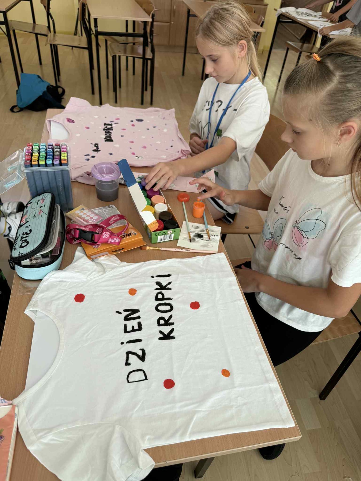 Klasą Vb na ostatnich zajęciach plastyki przygotowali już swoje wyjątkowe, „kropkowe” koszulki. Z pewnością będą one piękną inspiracją dla całej społeczności szkolnej!