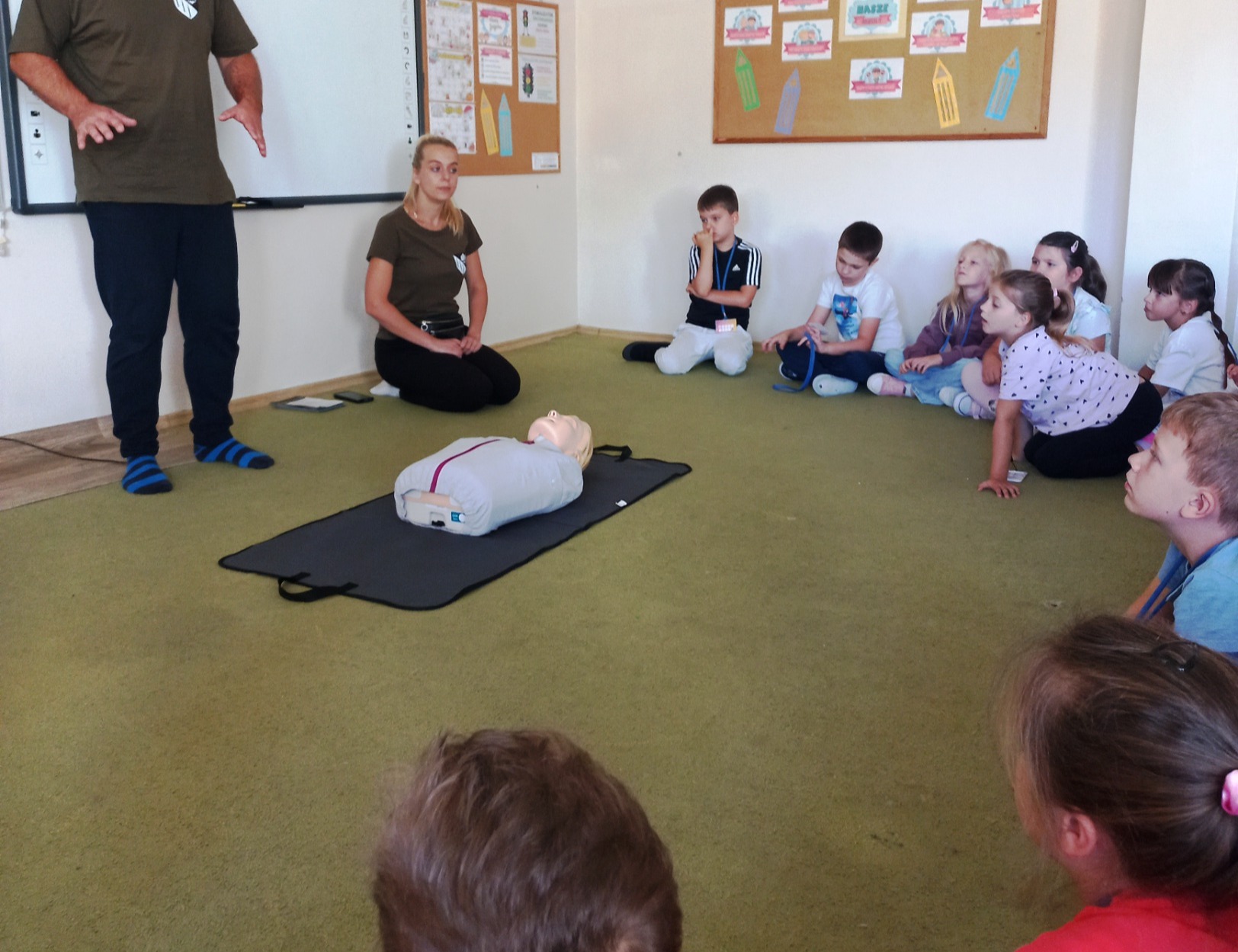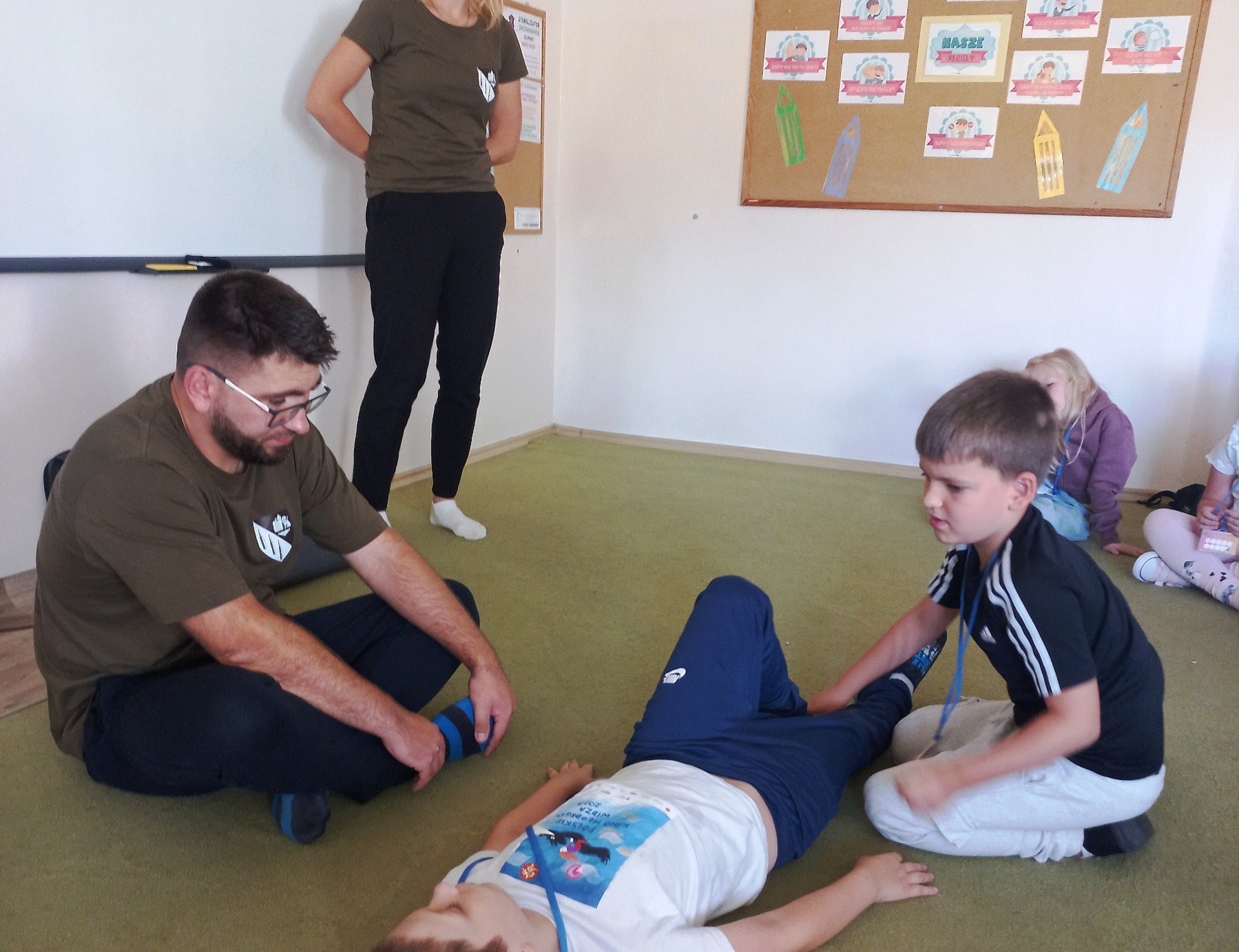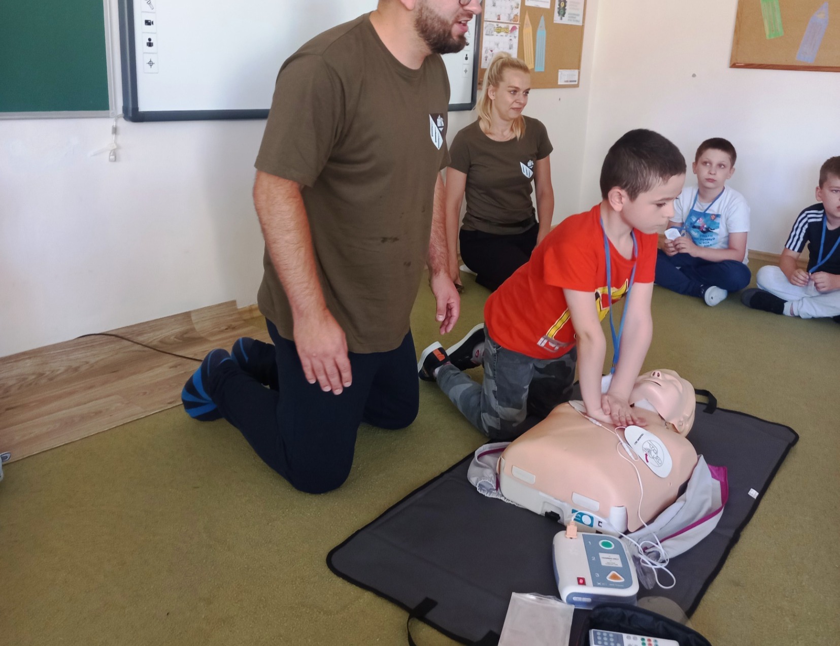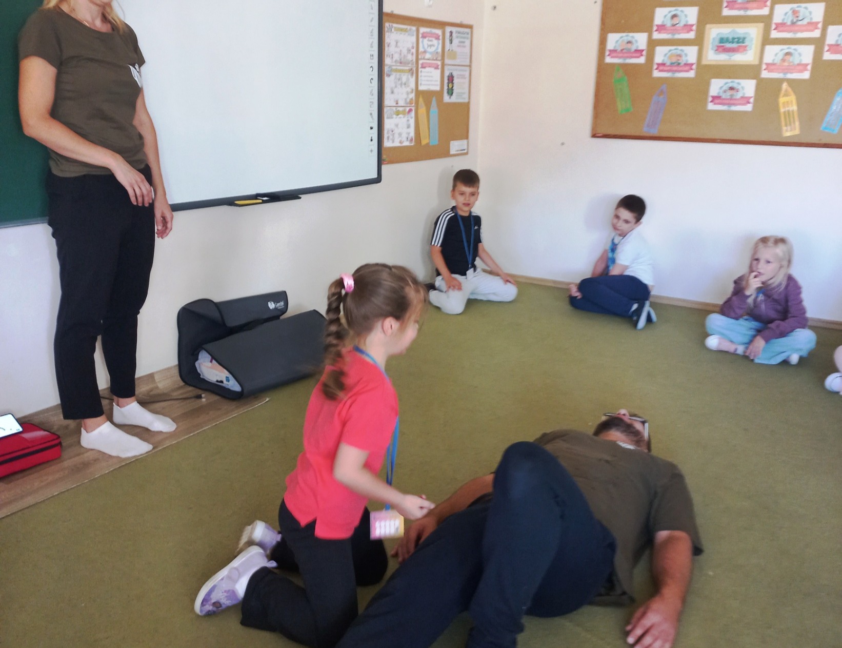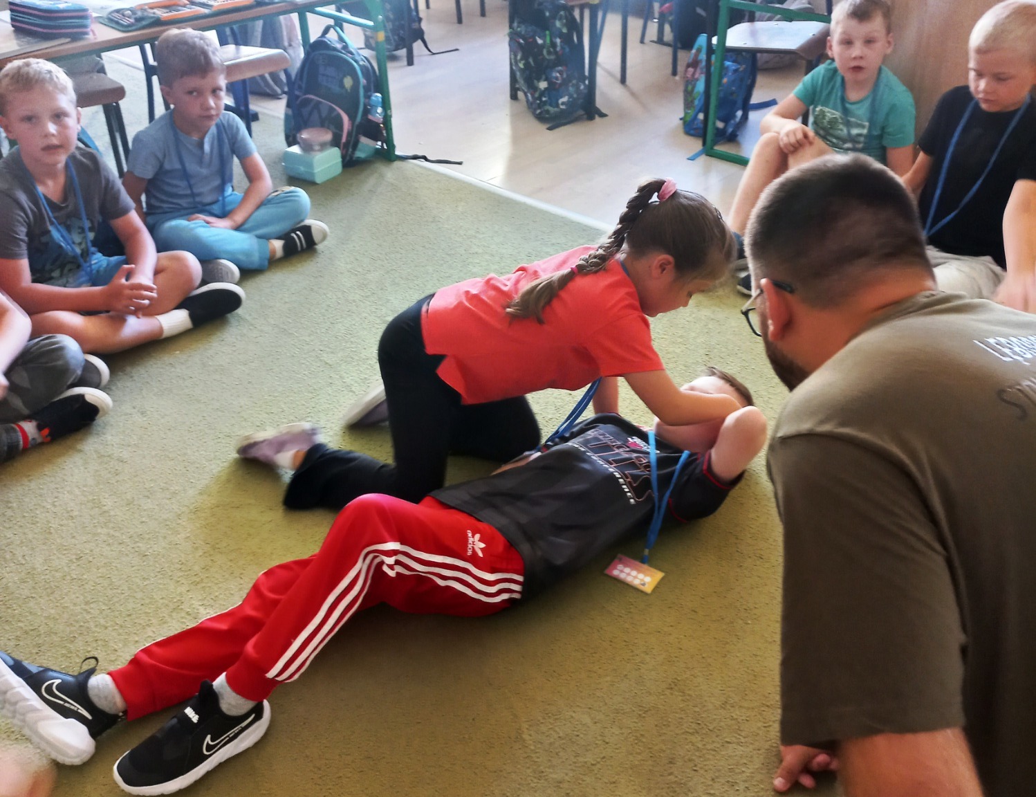 W piątek 12 września w klasie I a odbyły się zajęcia z pierwszej pomocy. Dzieci miały okazję poznać sposoby udzielenia pomocy oraz poznały pozycję boczną bezpieczną w teorii, ale również w praktyce. Zajęcia poprowadzili rodzice ucznia, którzy należą do Stowarzyszenia Proobronnego Lębork.