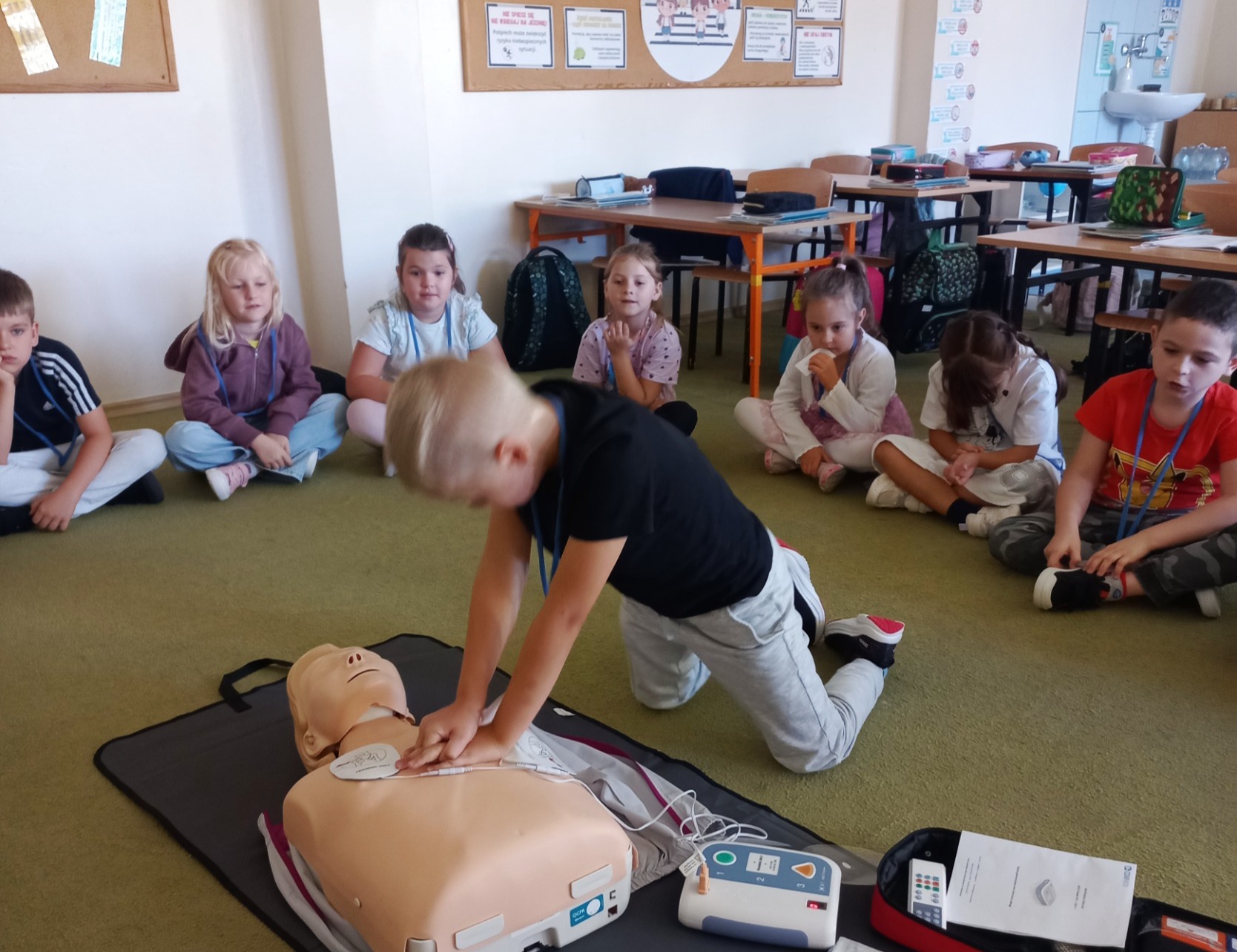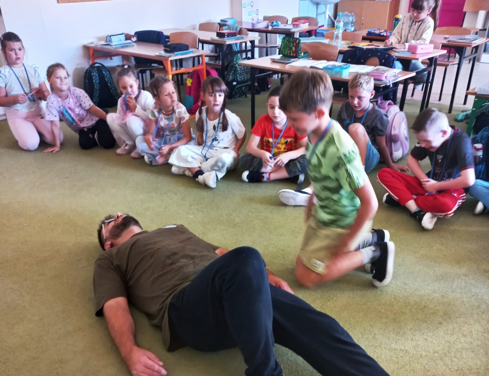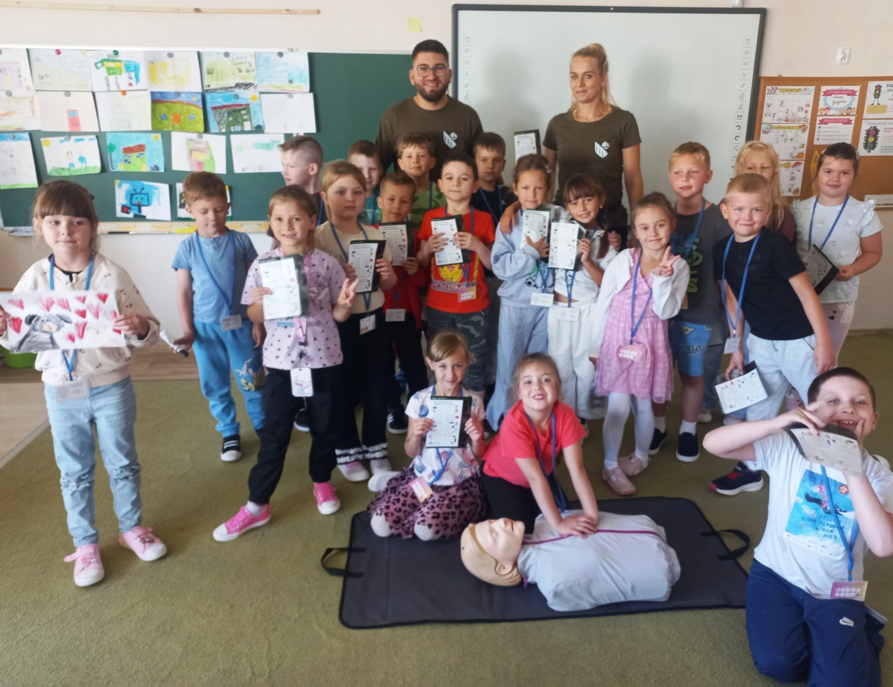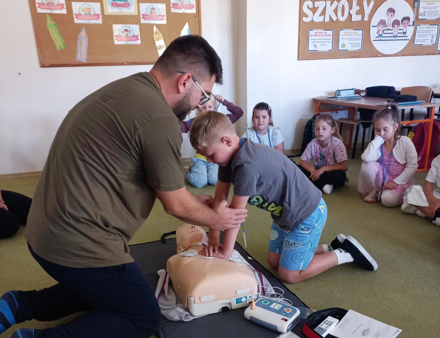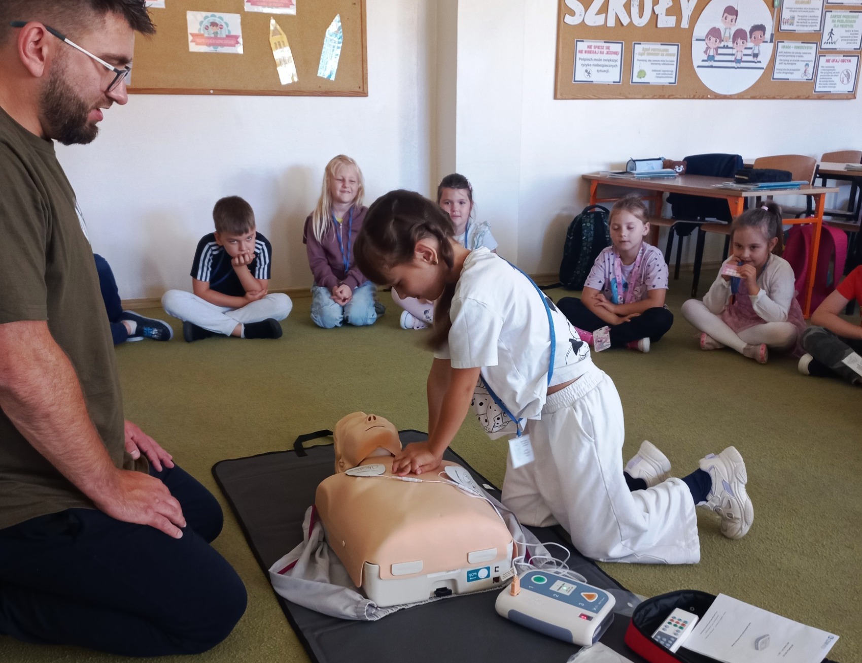 W piątek 12 września w klasie I a odbyły się zajęcia z pierwszej pomocy. Dzieci miały okazję poznać sposoby udzielenia pomocy oraz poznały pozycję boczną bezpieczną w teorii, ale również w praktyce. Zajęcia poprowadzili rodzice ucznia, którzy należą do Stowarzyszenia Proobronnego Lębork.