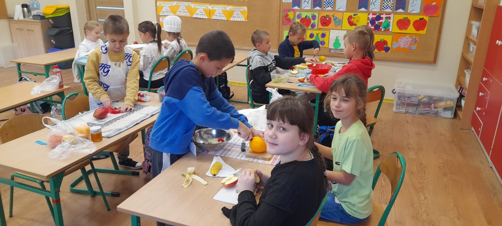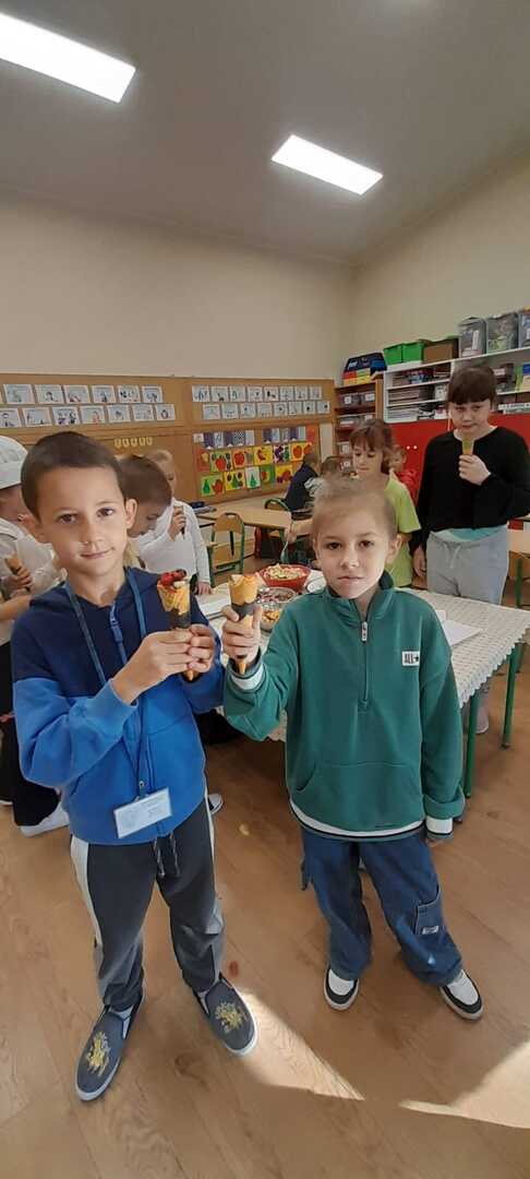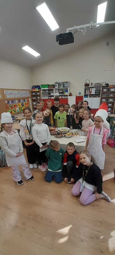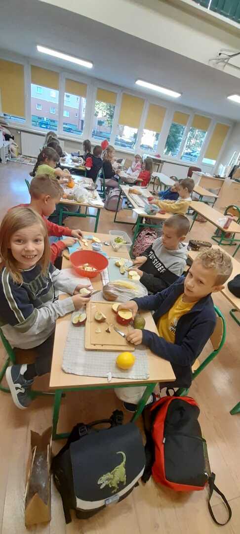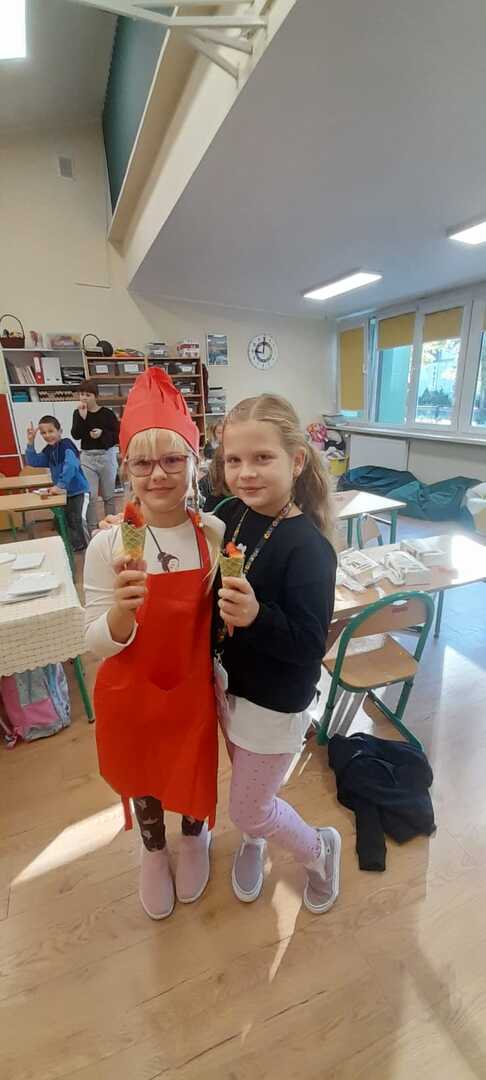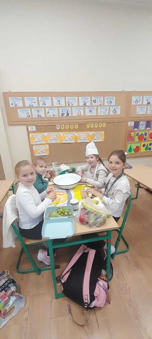 Podczas lekcji uczniowie klasy 2b rozmawiali na temat zasad zdrowego odżywiania się. W myśl hasla: "Zdrowe może być smaczne" dzieci przygotowały kolorowe sałatki owocowe. Były naprawdę pyszne!