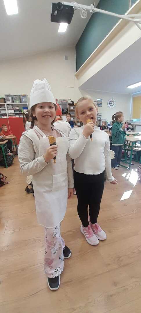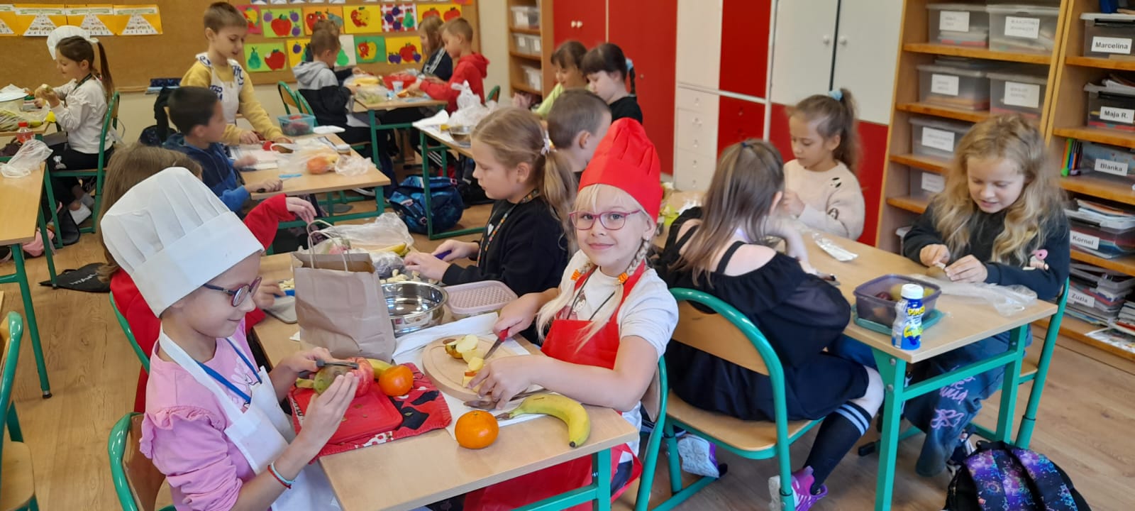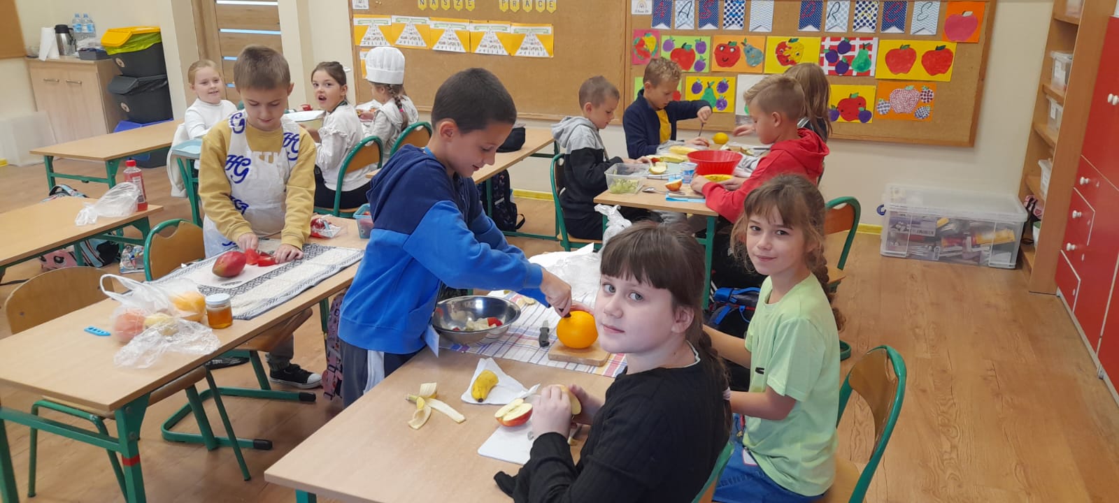 Podczas lekcji uczniowie klasy 2b rozmawiali na temat zasad zdrowego odżywiania się. W myśl hasla: "Zdrowe może być smaczne" dzieci przygotowały kolorowe sałatki owocowe. Były naprawdę pyszne!