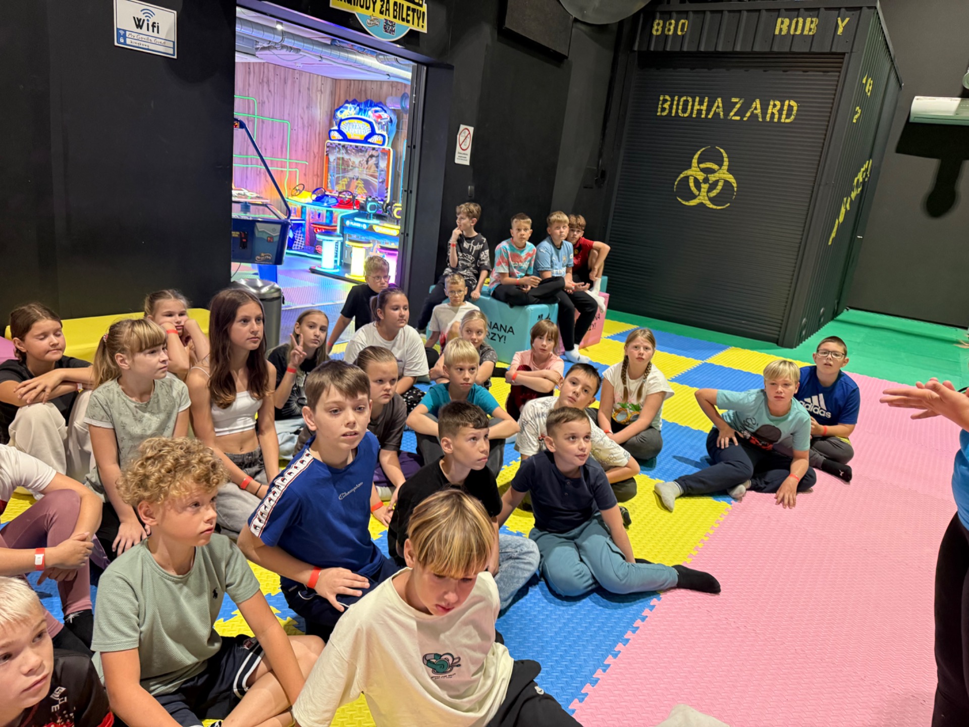 W piątek, 26 września klasy 4a i 5b wybrały się na wycieczkę do Mr Godzilla w Gdyni. Na miejscu czekało na uczniów dużo dobrej zabawy i ciekawych zadań do rozwiązania. Wspólne aktywności sprzyjały integracji i lepszemu poznaniu się nawzajem. W trakcie pobytu była przerwa na picie i pyszny kawałek pizzy. Uczniowie spędzili ten dzień w doskonałej atmosferze, budując relacje i wspólnie się bawiąc.