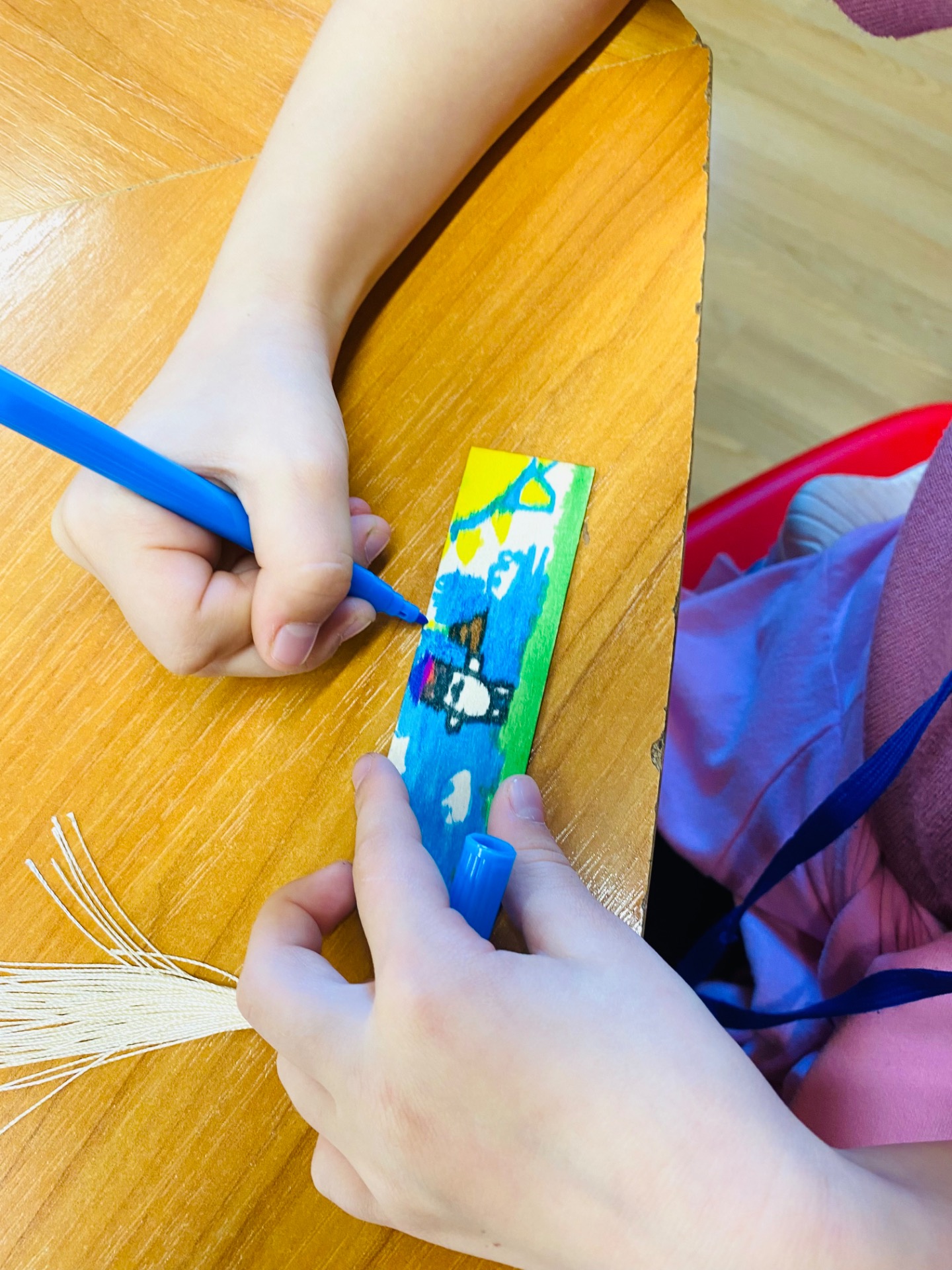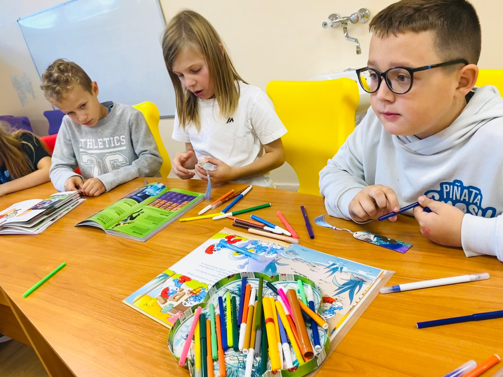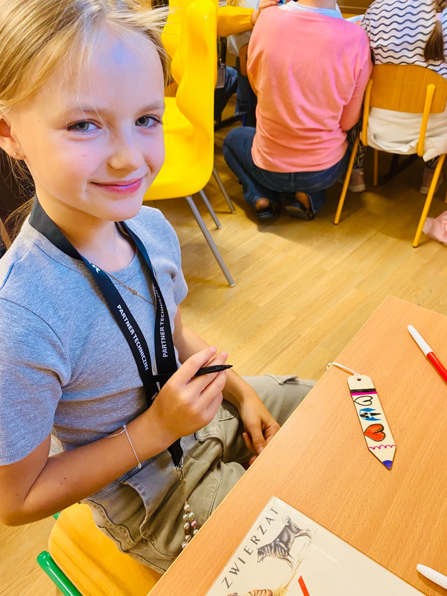 Po skończonej lekturze, uczestnicy przeszli do części warsztatowej. Z zapałem zabrali się do wykonywania własnoręcznych zakładek do książek, które ozdobili chwostami. Była to doskonała okazja do ćwiczenia zdolności manualnych i kreatywności. Każda zakładka była unikatowa i w pełni odzwierciedlała wyobraźnię swojego twórcy. Uczniowie z dumą prezentowali swoje dzieła, które posłużą im do zaznaczania stron w ich ulubionych lekturach.