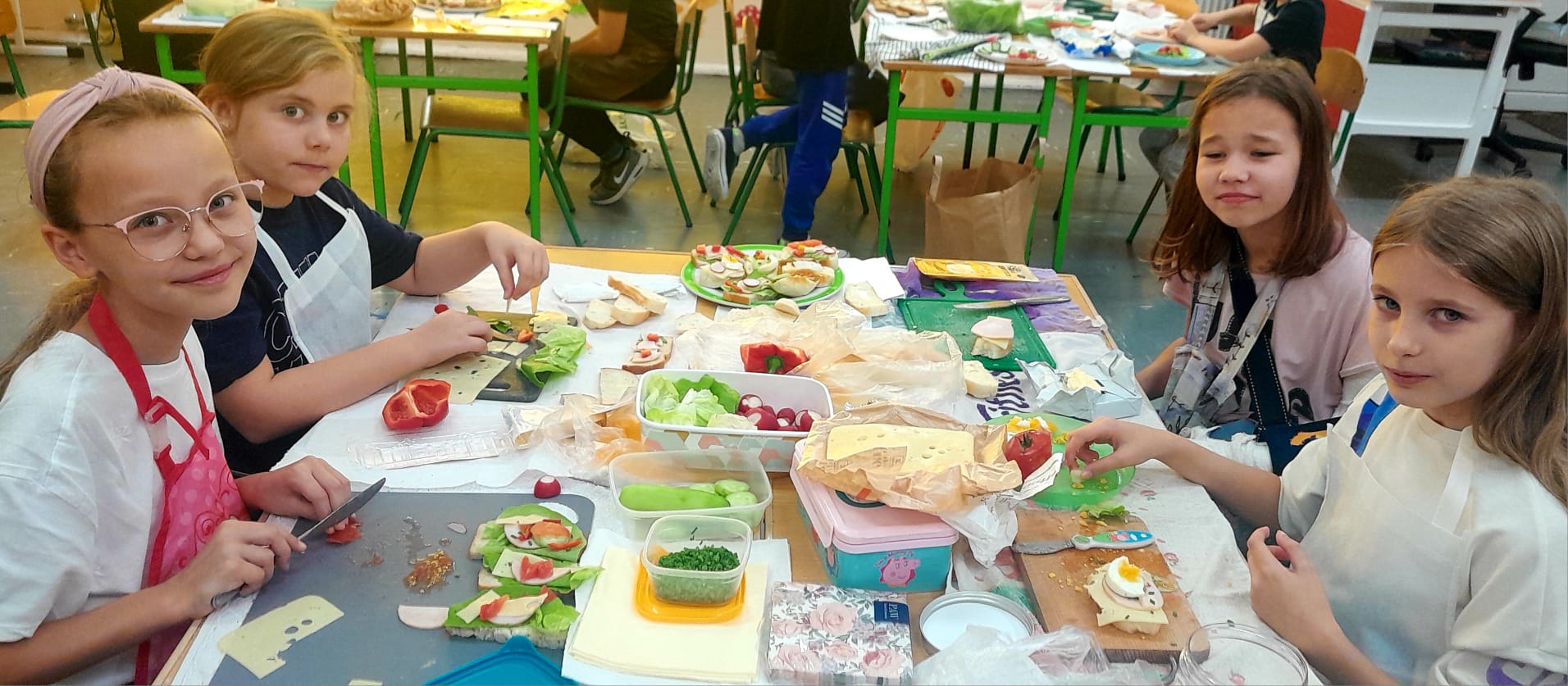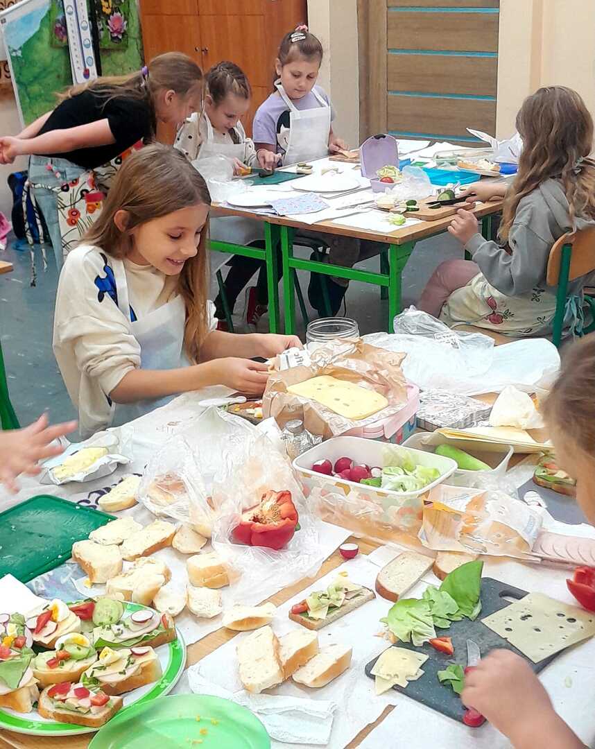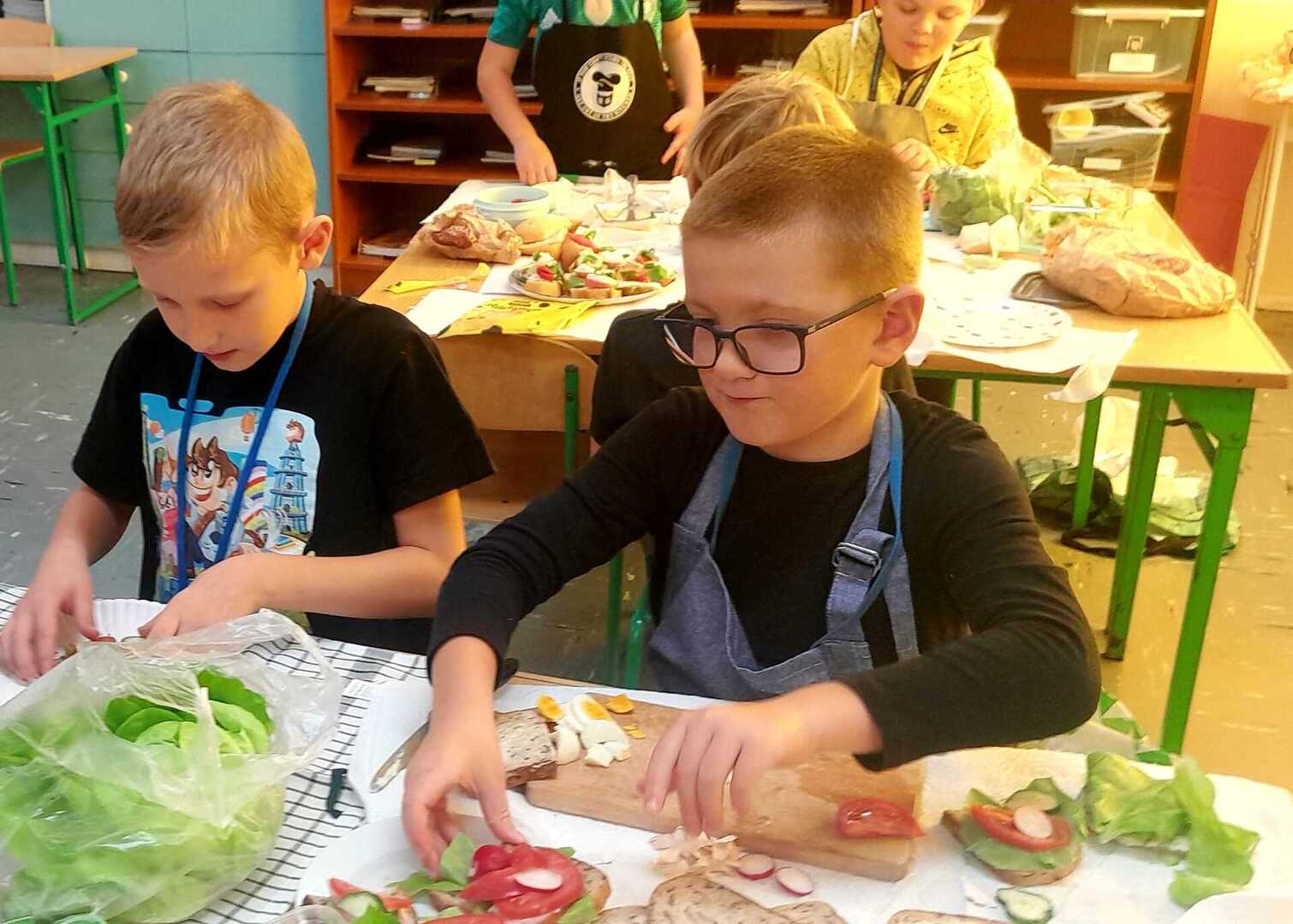 Podczas zajęć uczniowie dowiedzieli się, jak ważne jest spożywanie warzyw i owoców każdego dnia, aby wzmacniać odporność, dbać o zdrowie i prawidłowy rozwój. Wspólne przygotowywanie zdrowych przekąsek pozwoliło dzieciom przekonać się, że to, co dobre dla organizmu, może być również smaczne i pięknie wyglądać!