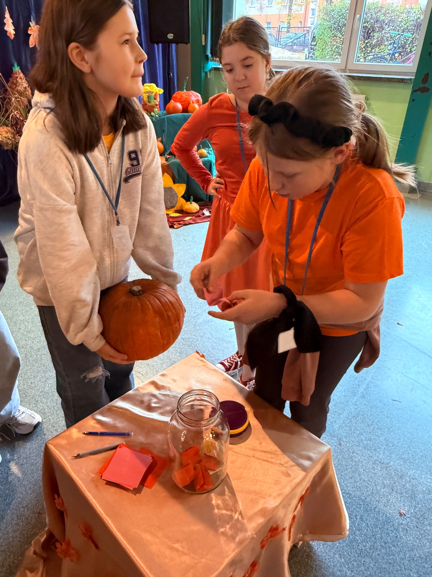W czwartek, 30.10 - odbył się Dzień Dyni. Korytarze szkolne rozbłysły się na pomarańczowo ;) Na sali forum odbył się kiermasz i zabawa w ważenie dyni ;) We wtorek zebrane pieniądze przekażemy do Lęborskiego Hospicjum Stacjonarnego a w środę przekażemy niespodziankę uczniom , którzy zgadli jak była waga dyni .