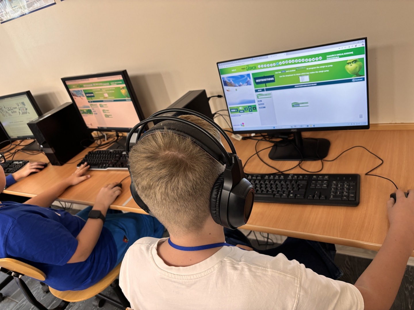 Uczniowie klasy 2a i 3c poznawali podstawy kodowania z wykorzystaniem aplikacji i robotów takich jak ScratchJr, Scottie Go, Ozobot, Photon, a także kodowanie offline z użyciem mat edukacyjnych, długopisów 3d i kloców Korbo. Starsi uczniowie z klas 4 i 5 doskonalili swoje umiejętności, tworząc własne projekty i programując bardziej zaawansowane zadania.
