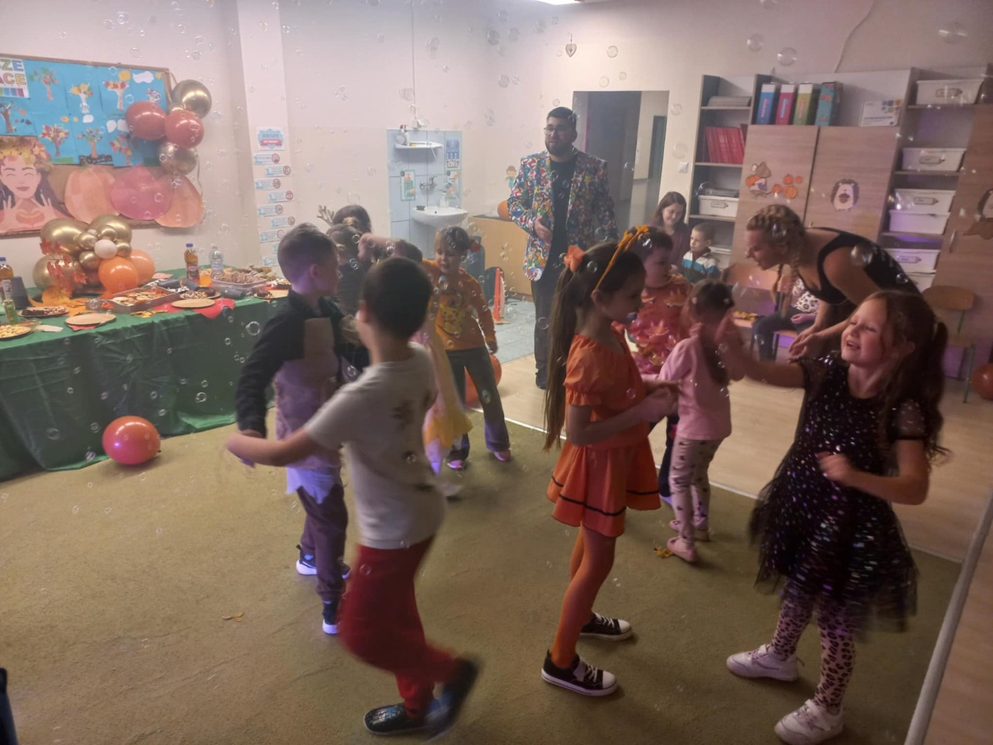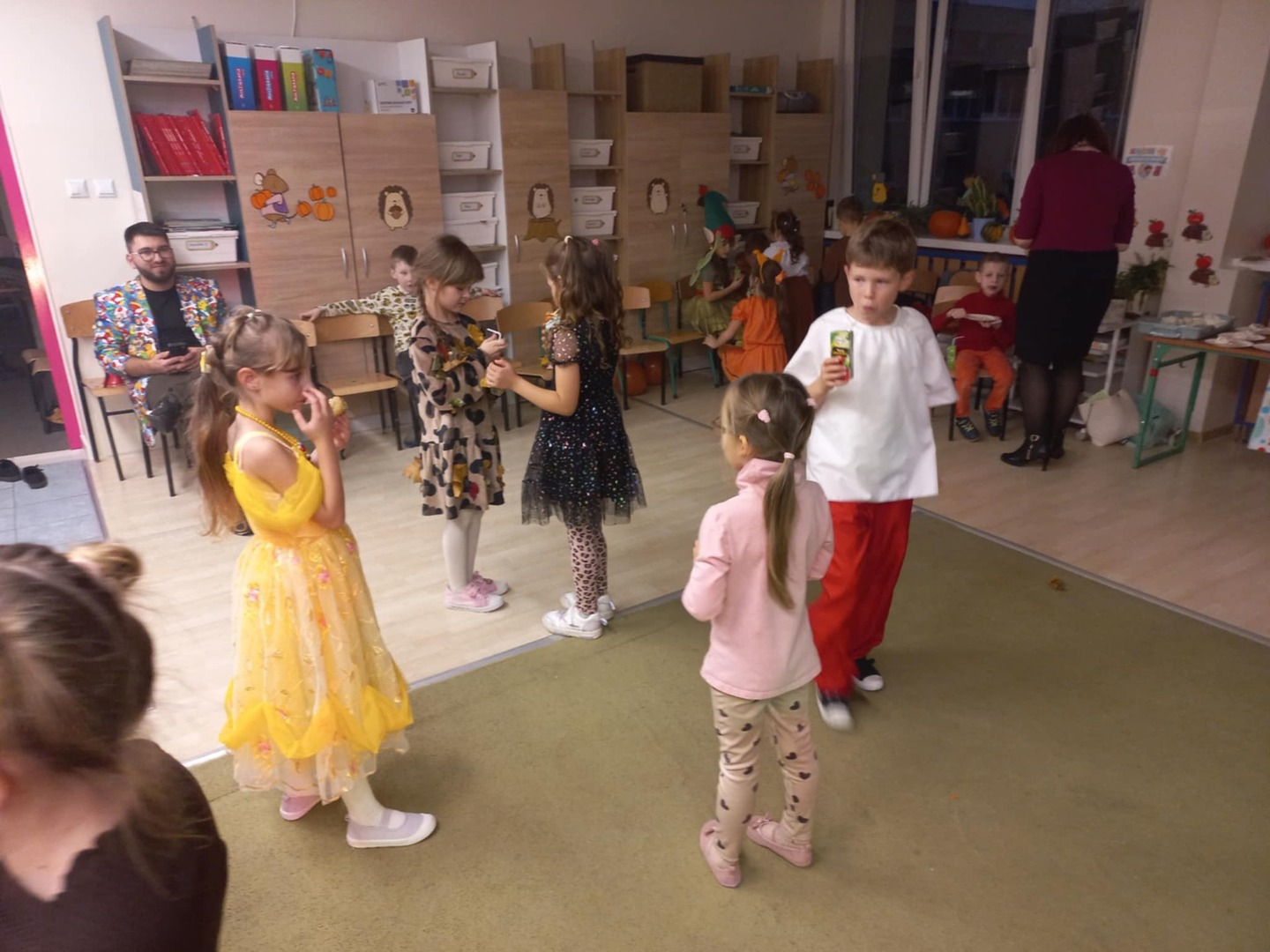 Nieoceniony animator Amigol zadbał o fantastyczną oprawę muzyczną i szereg zabaw ruchowych, które porwały wszystkich do tańca. Dzieci w jesiennych strojach i radosnej atmosferze bawiły się doskonale, a wspólna zabawa na długo pozostanie w ich pamięci.