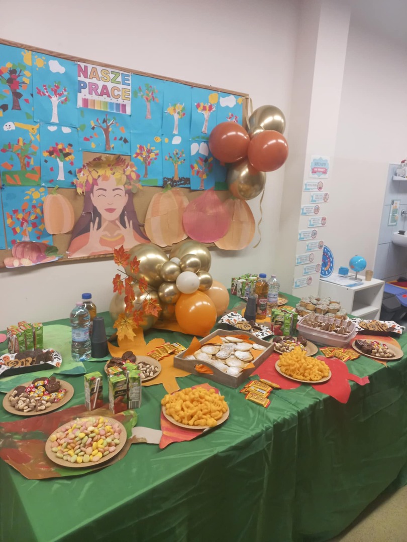 W miniony czwartek w szkole rozbrzmiewały dźwięki muzyki dobiegającej z klasy Ia. To właśnie tam odbywał się Bal Jesieni. Dzieci z ogromnym zaangażowaniem przygotowywały się do tego wydarzenia – samodzielnie wykonywały kolorowe dekoracje, które przemieniły salę w prawdziwą jesienną krainę pełną liści, dyni i kasztanów. Rodzice również włączyli się w przygotowania, dbając o pyszny poczęstunek, który kusił zapachem domowych wypieków i owocowych przekąsek.