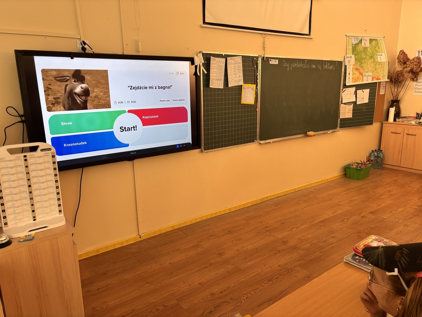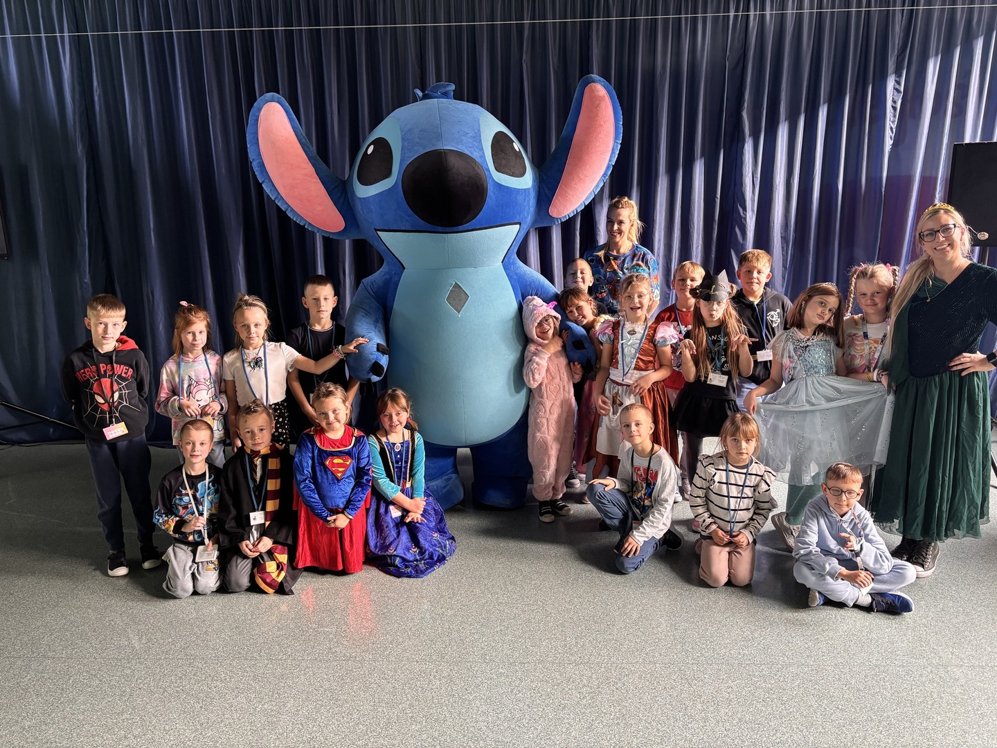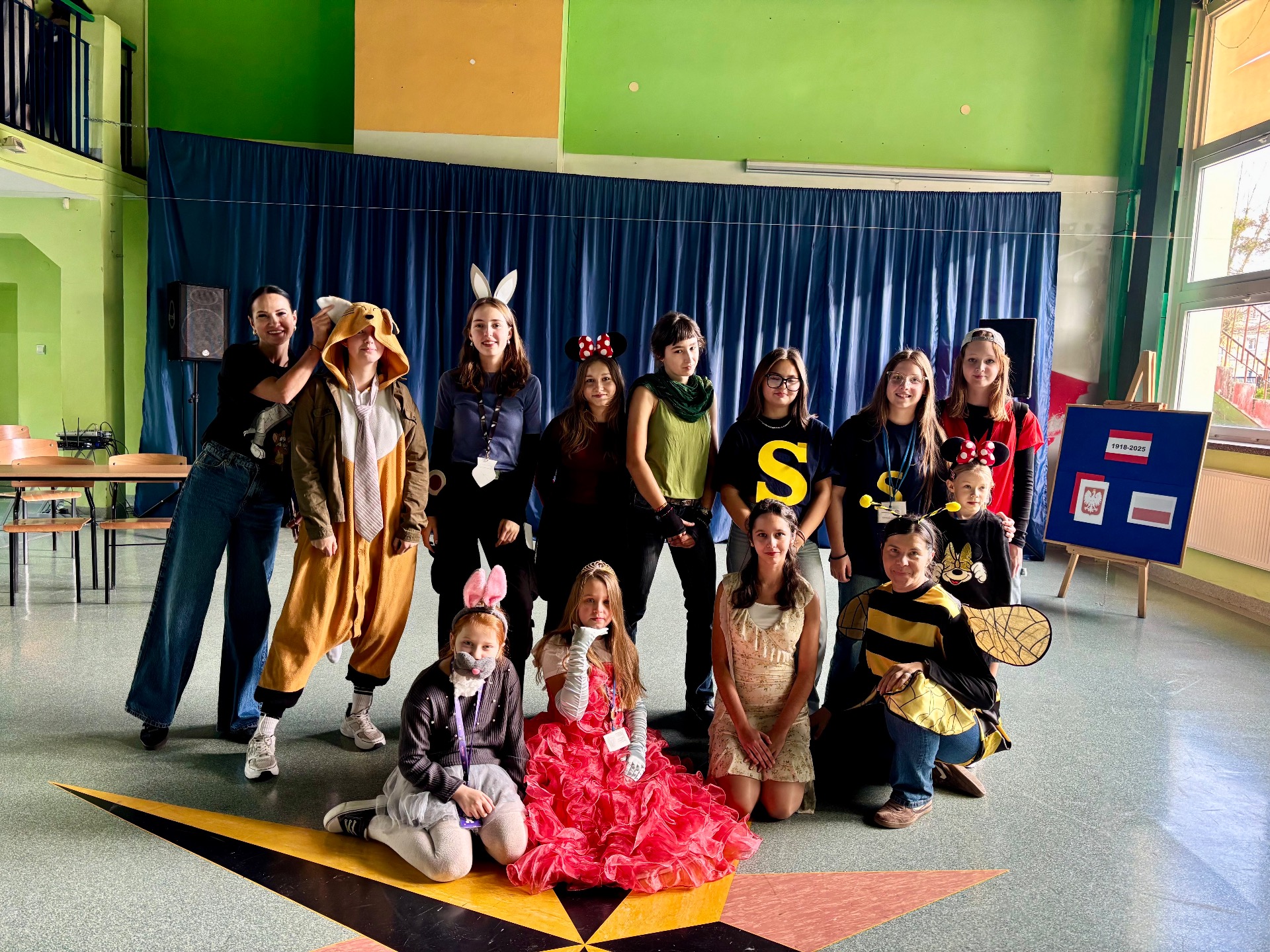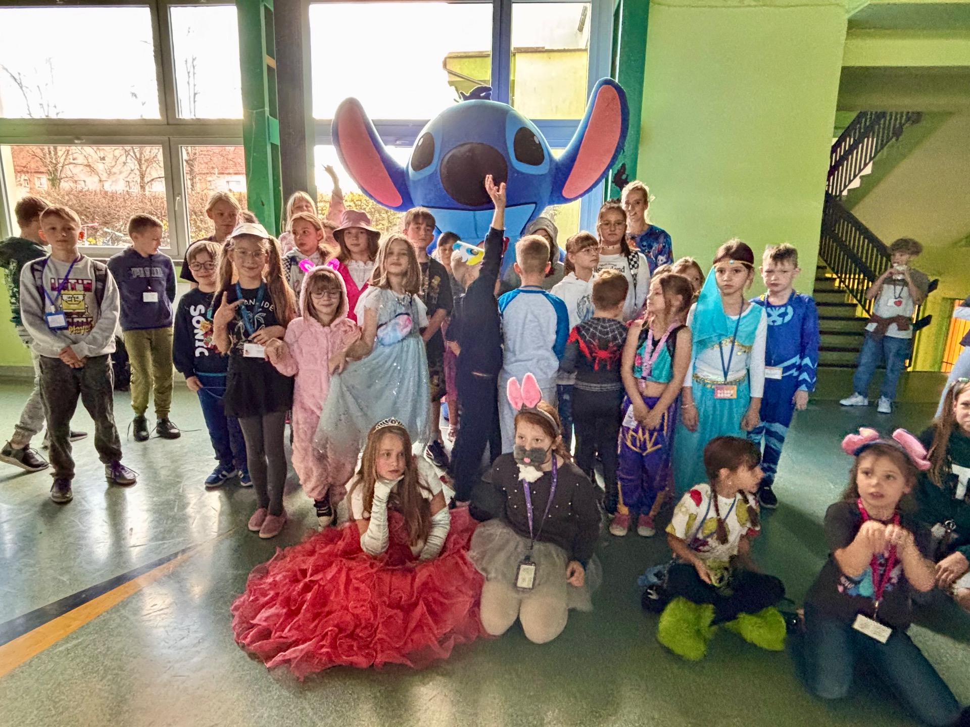 W klasach uczniowie mogli sprawdzić swoją wiedzę, rozwiązując quizy o bajkach z wykorzystaniem Classwise – emocji i śmiechu nie brakowało. Na długiej przerwie przebrani uczniowie spotkali się na sali forum, gdzie zrobiono wspólne pamiątkowe zdjęcie.