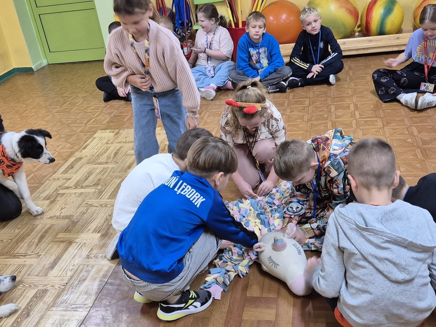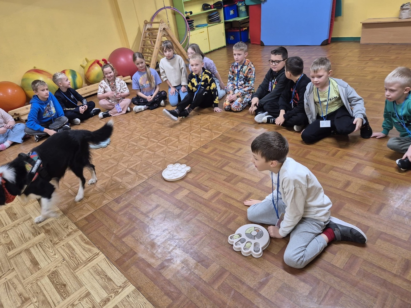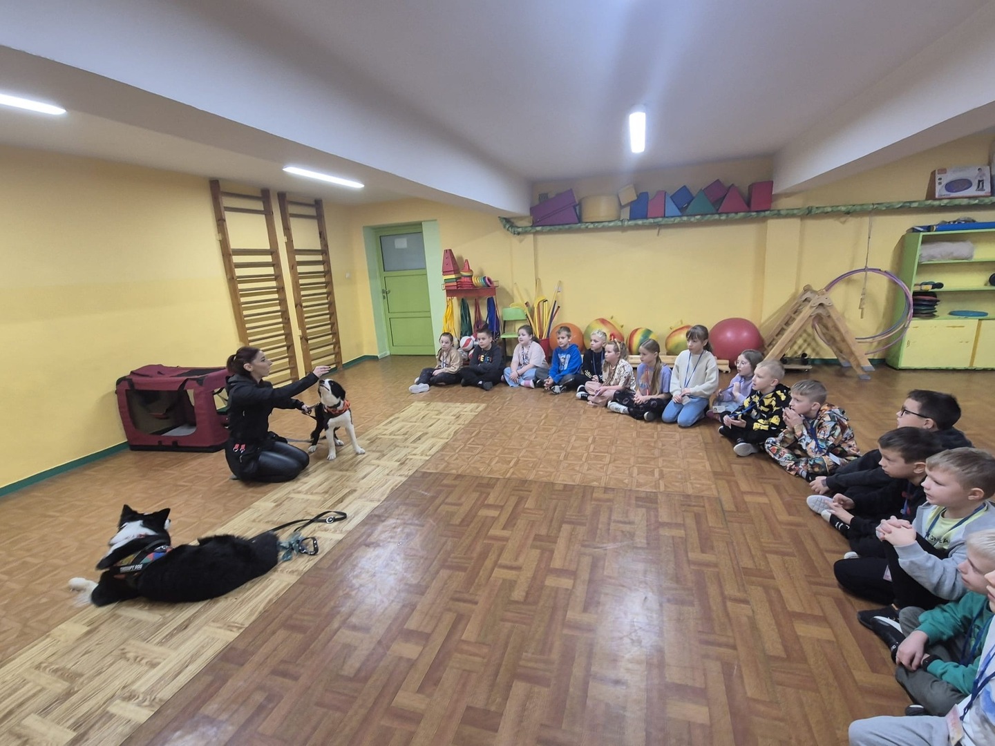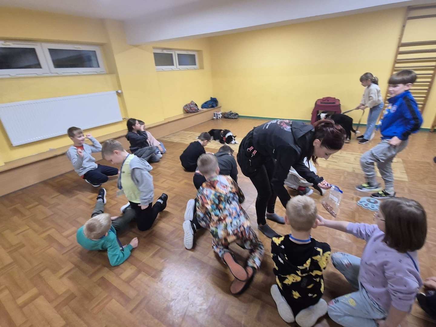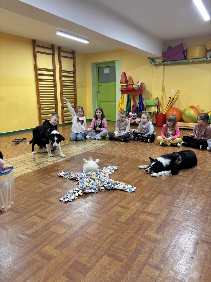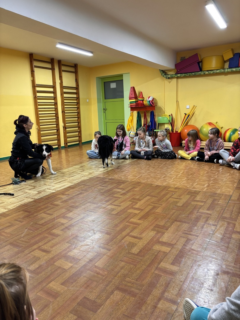 Uczniowie klas drugich wzięli udział w wyjątkowych warsztatach z dogoterapii, podczas których towarzyszyły im dwa przyjazne psy rasy Border Collie – Chilli i Pepper. W trakcie zajęć dzieci poznały różne rasy psów oraz dowiedziały się, jak właściwie opiekować się czworonożnym przyjacielem. Pani Paulina omówiła również zasady bezpiecznego zachowania w sytuacji zagrożenia, na przykład podczas ataku psa. Uczniowie mieli okazję poćwiczyć wydawanie prostych komend, a także zobaczyć, jak działają maty węchowe i dlaczego są ważne dla psów. Warsztaty dostarczyły dzieciom zarówno cennej wiedzy, jak i dużo radości ze wspólnego czasu spędzonego z Chilli i Pepper. Pieski wzbudziły ogromny zachwyt – bardzo spodobały się dzieciom i szybko skradły ich serca.