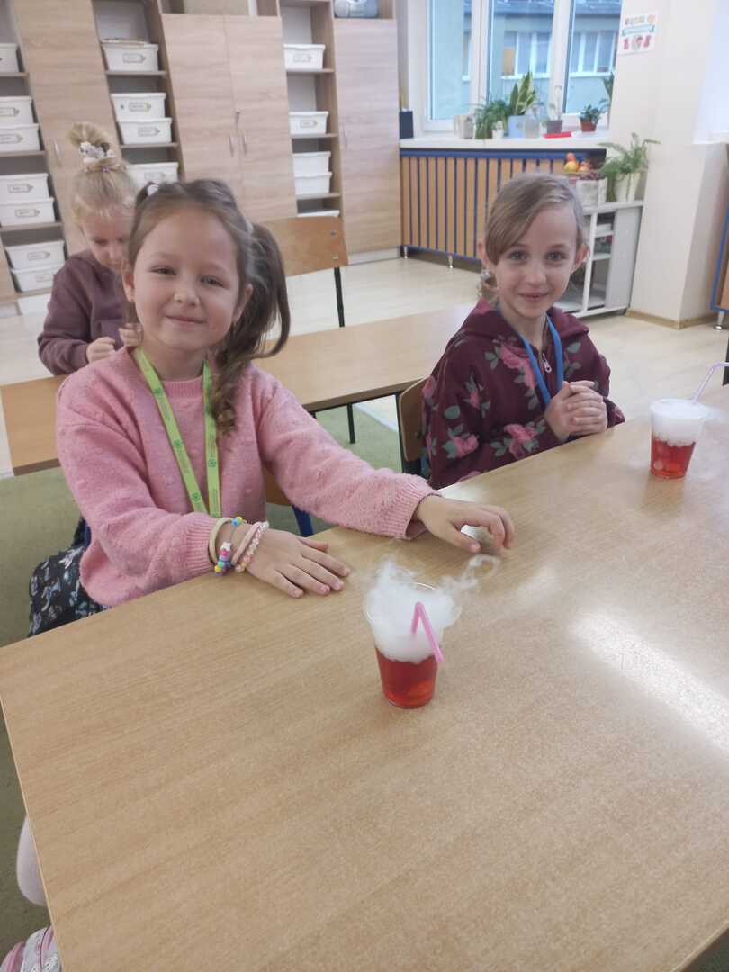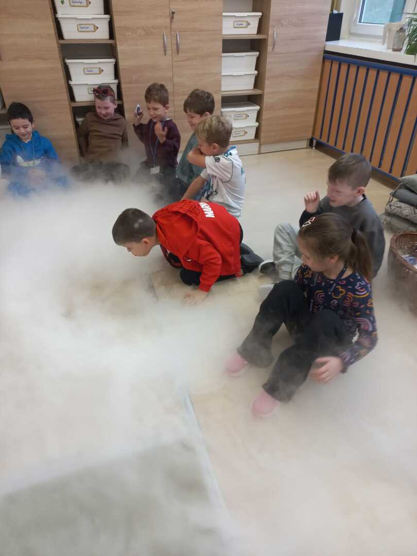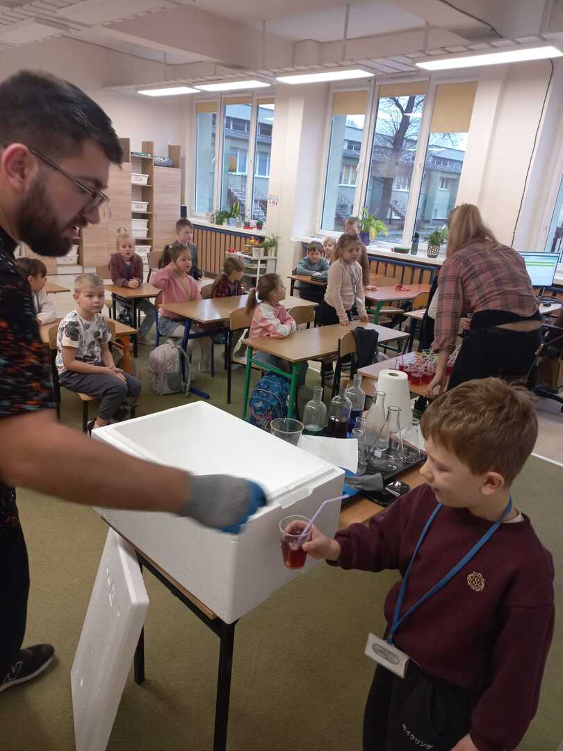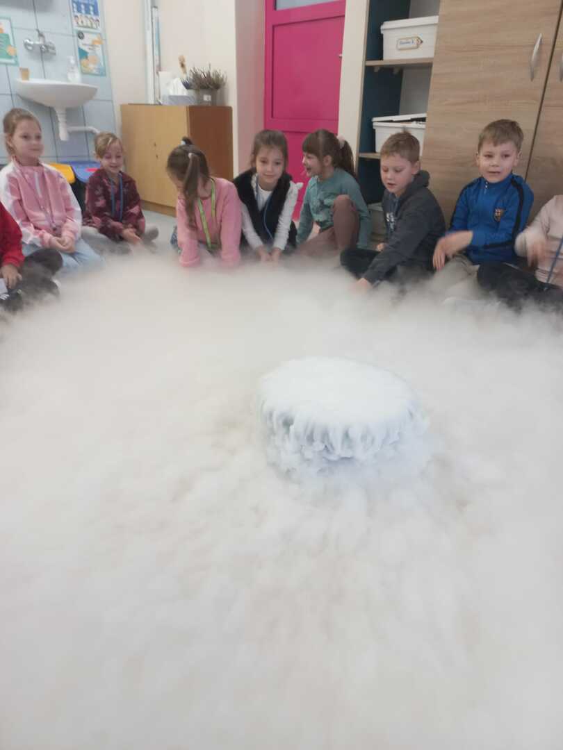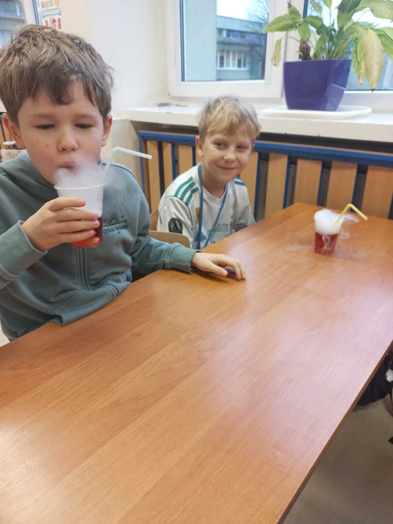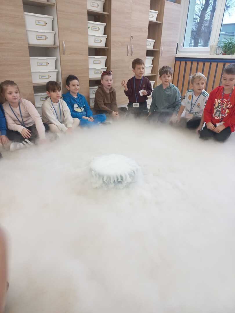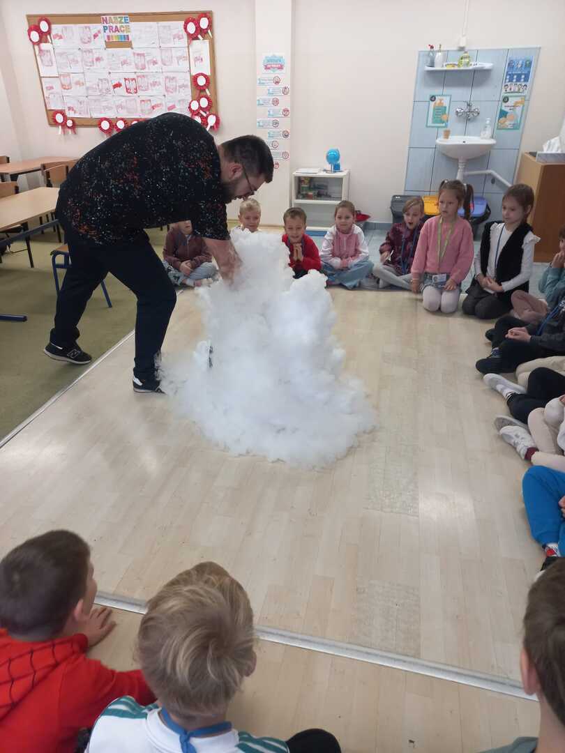 Klasa 1a uczestniczyła w magicznych warsztatach w wykorzystaniem suchego lodu. Dzieci poznały jego właściwości poprzez zabawę. Z uwagą i zainteresowaniem obserwowali kolejne eksperymenty. Największą ekscytację wzbudził ogień :) Na zakończenie wszyscy pili sok z magicznym dymem. Uczestnicy podsumowali zajęcia jednym zdaniem ,,byliśmy w chmurach”.