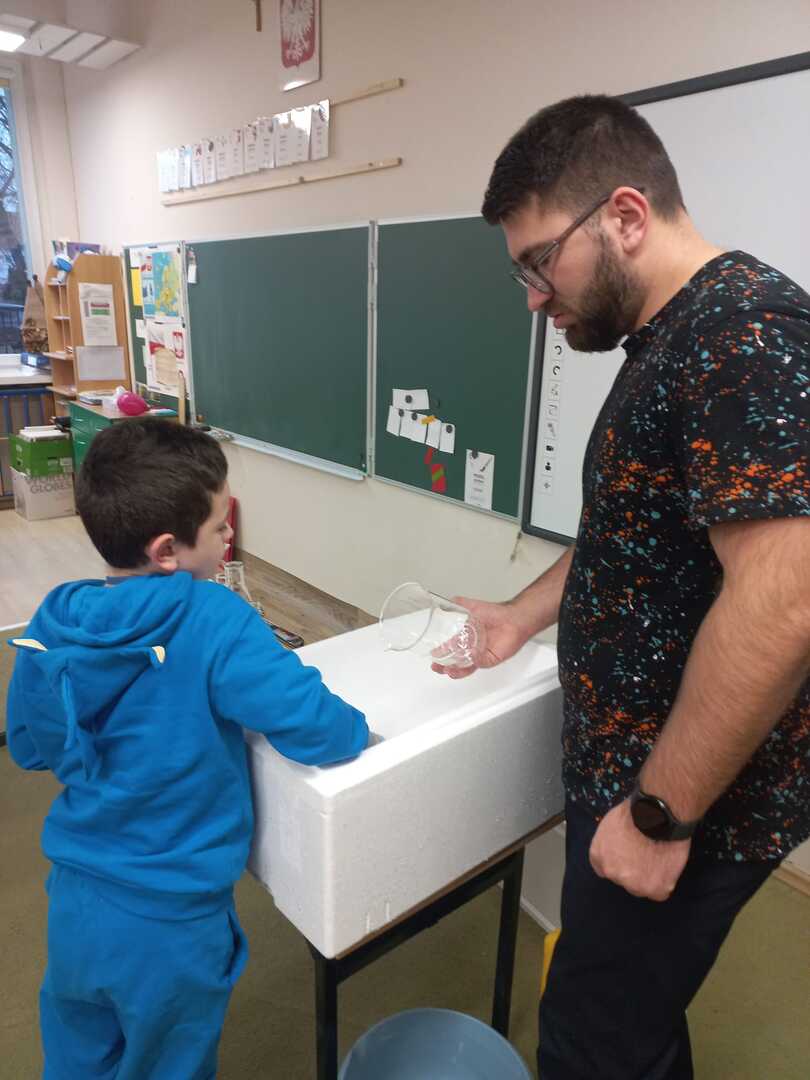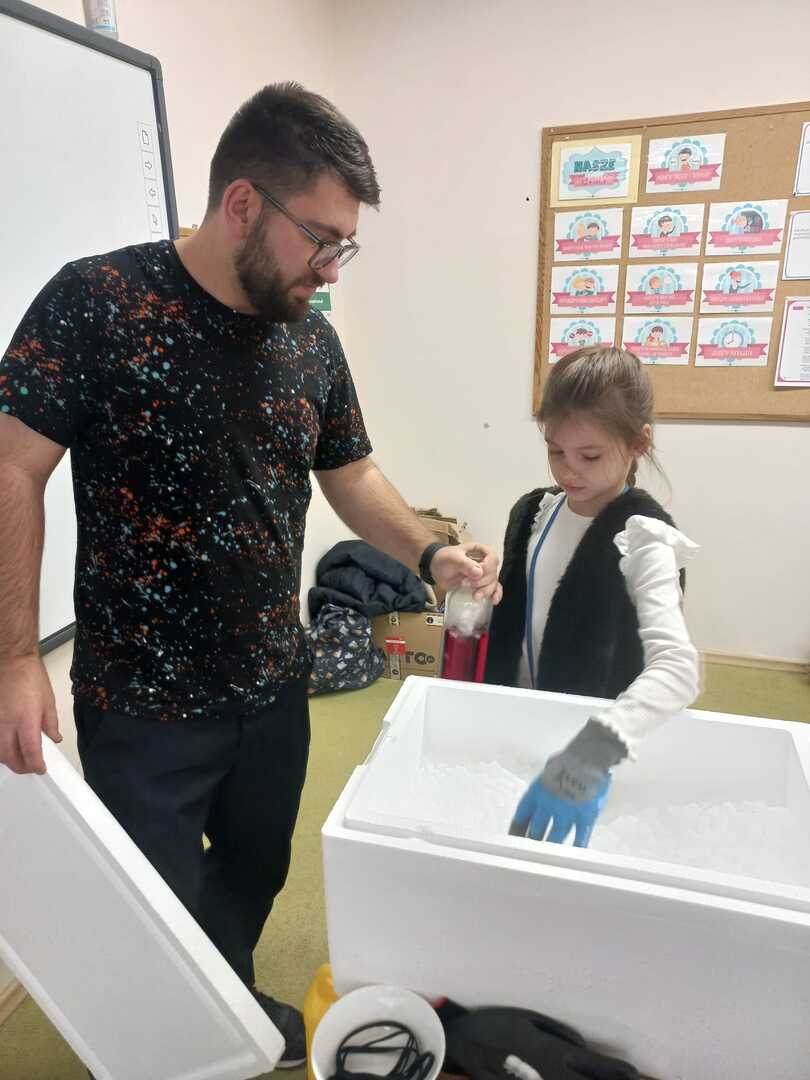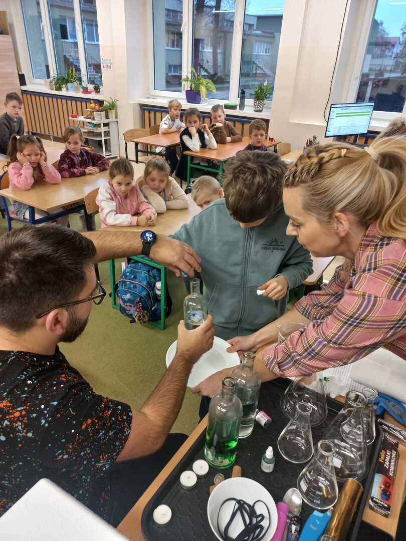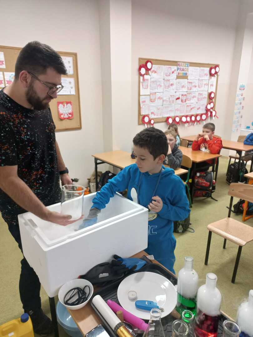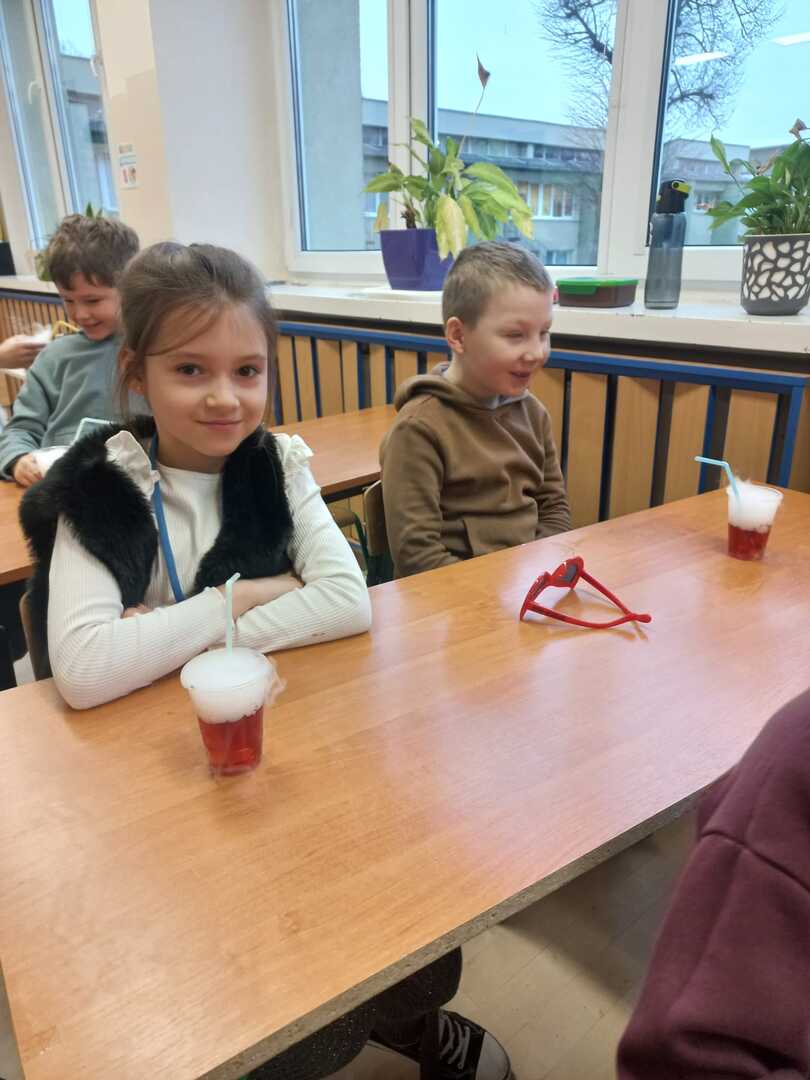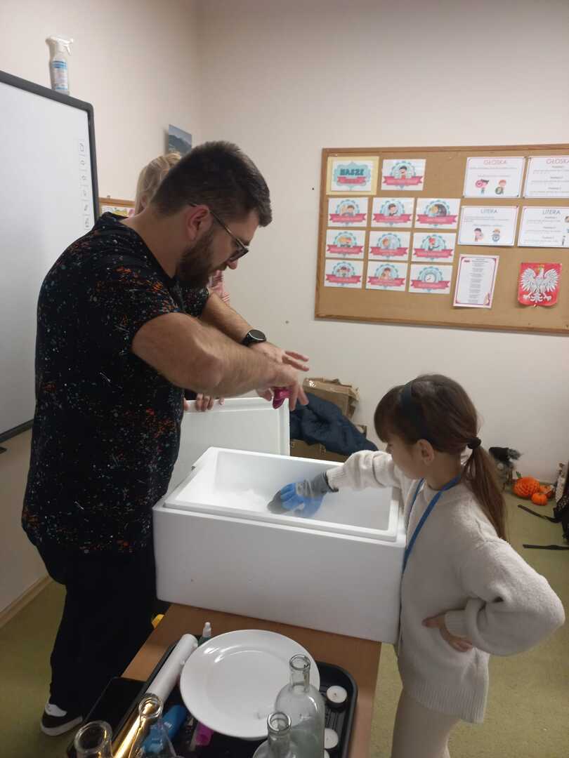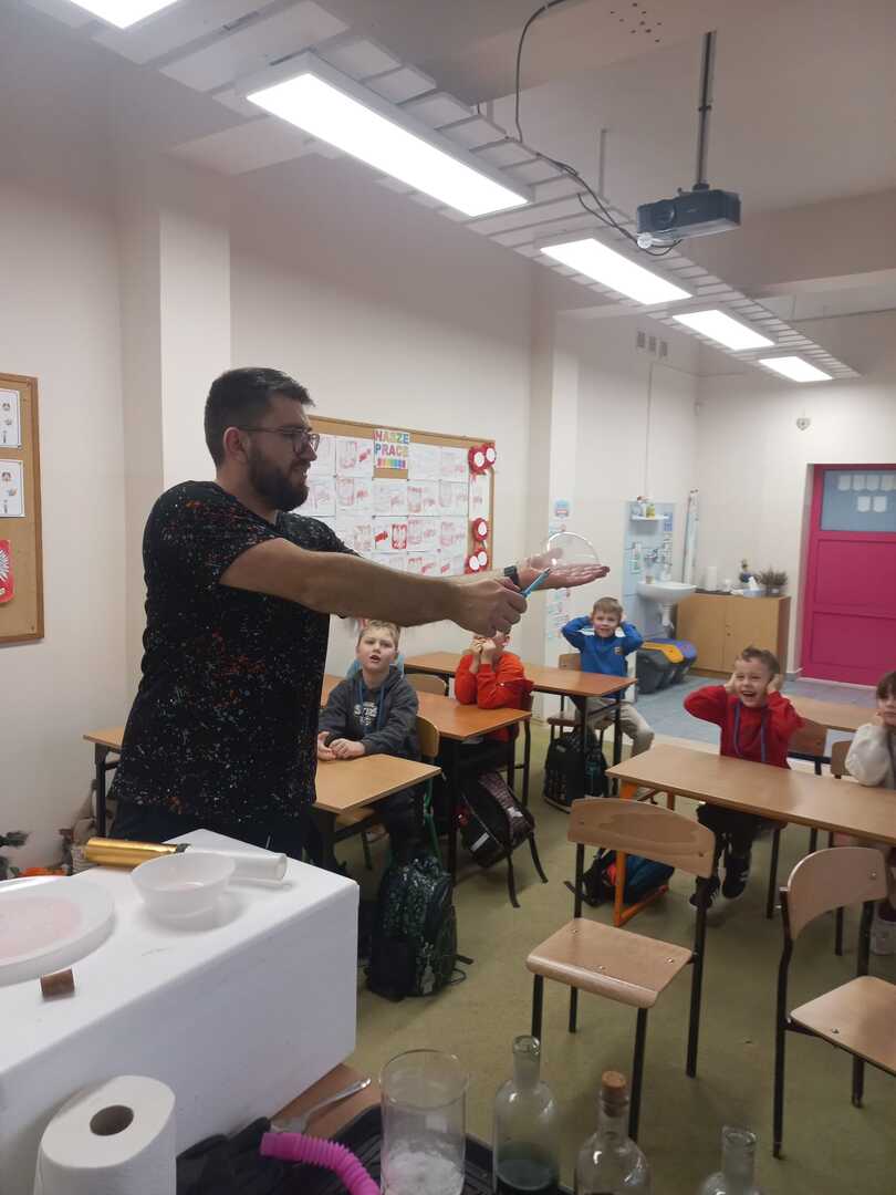 Klasa 1a uczestniczyła w magicznych warsztatach w wykorzystaniem suchego lodu. Dzieci poznały jego właściwości poprzez zabawę. Z uwagą i zainteresowaniem obserwowali kolejne eksperymenty. Największą ekscytację wzbudził ogień :) Na zakończenie wszyscy pili sok z magicznym dymem. Uczestnicy podsumowali zajęcia jednym zdaniem ,,byliśmy w chmurach”.