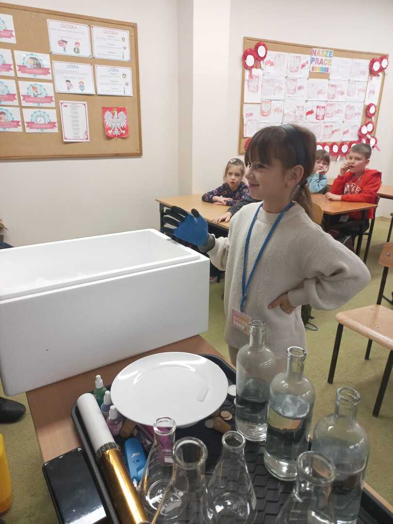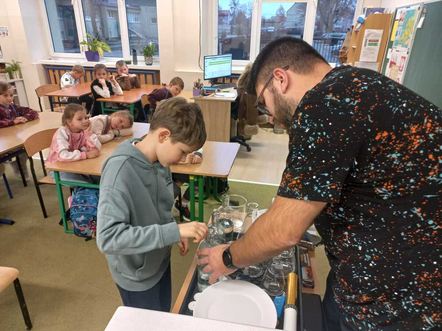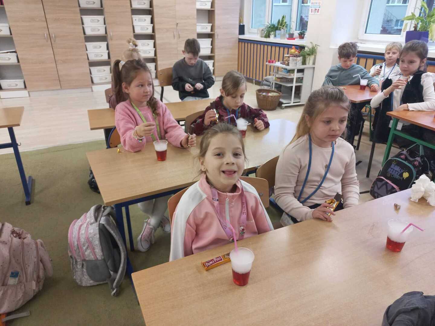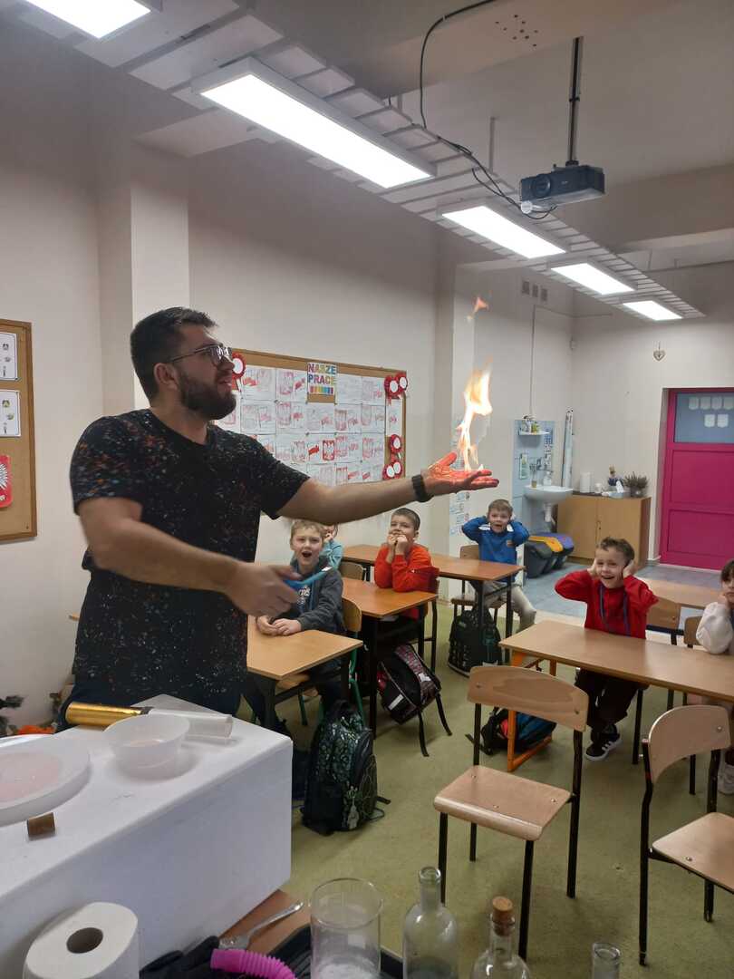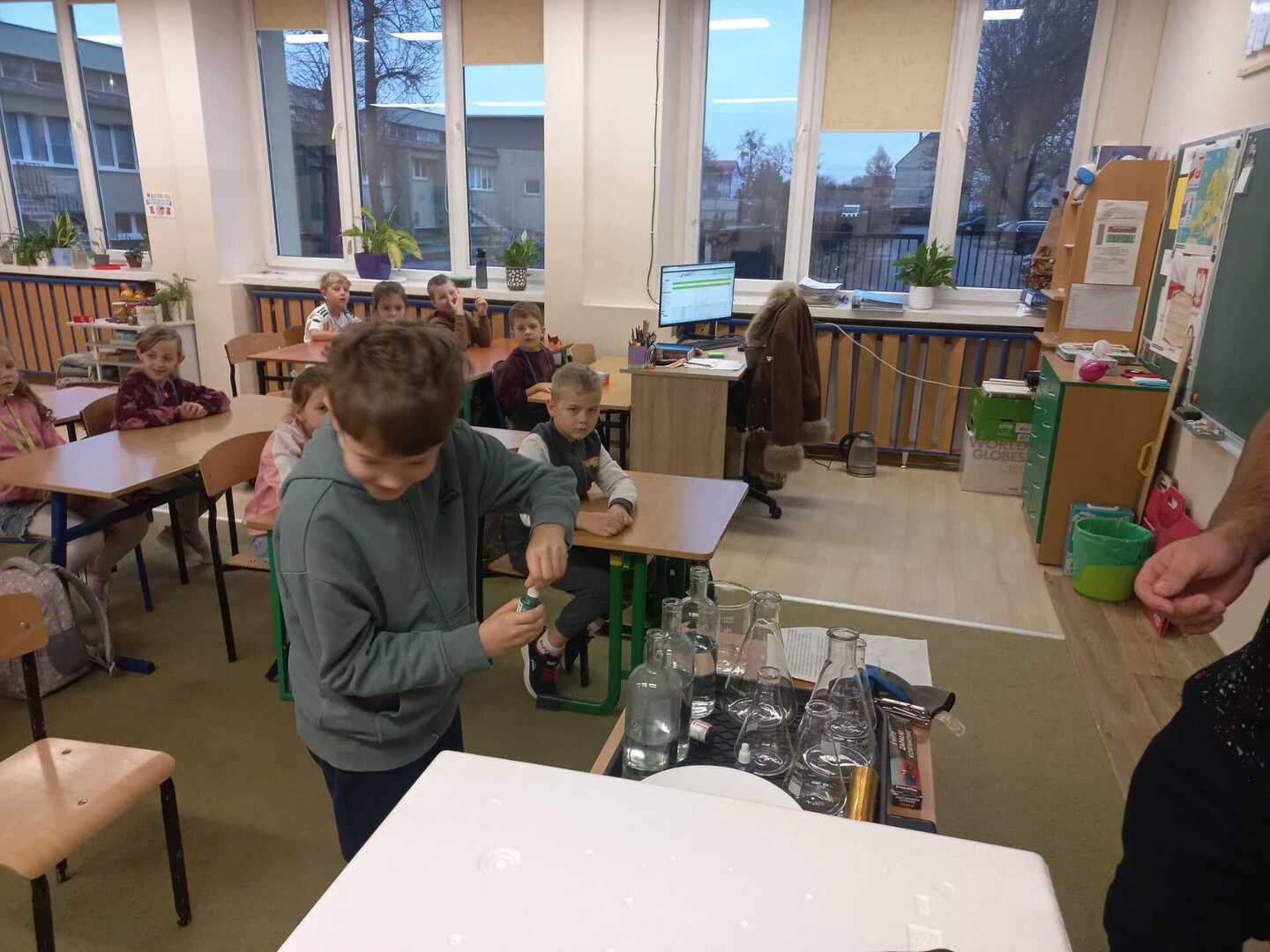 Klasa 1a uczestniczyła w magicznych warsztatach w wykorzystaniem suchego lodu. Dzieci poznały jego właściwości poprzez zabawę. Z uwagą i zainteresowaniem obserwowali kolejne eksperymenty. Największą ekscytację wzbudził ogień :) Na zakończenie wszyscy pili sok z magicznym dymem. Uczestnicy podsumowali zajęcia jednym zdaniem ,,byliśmy w chmurach”.