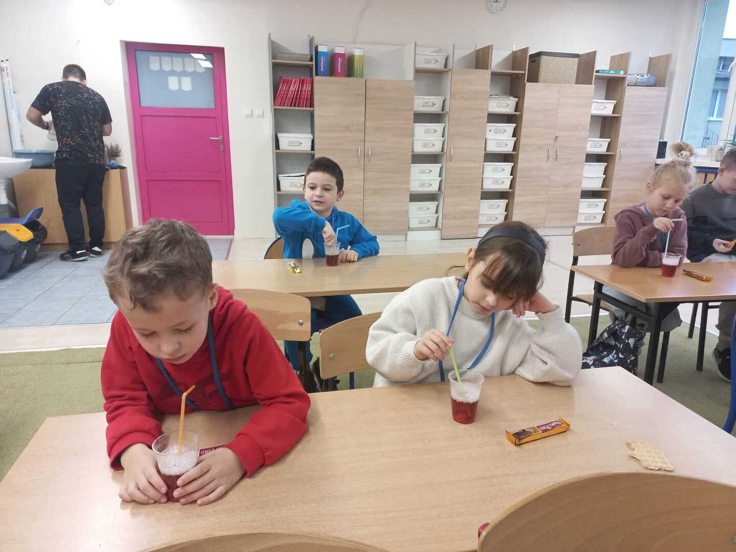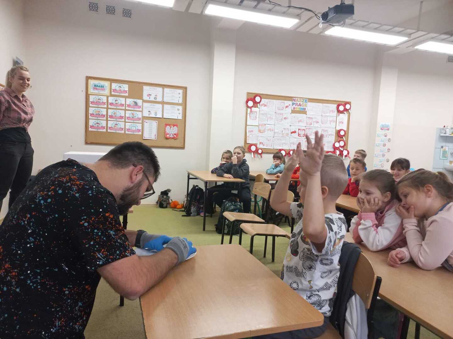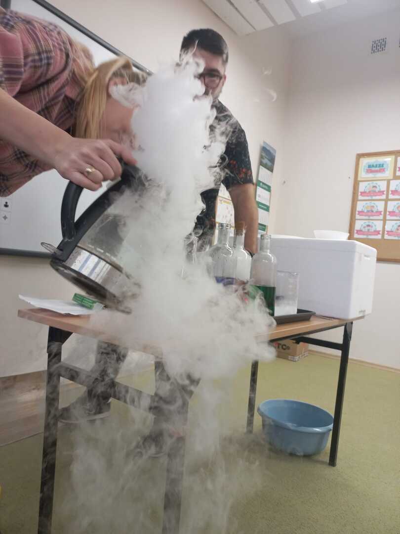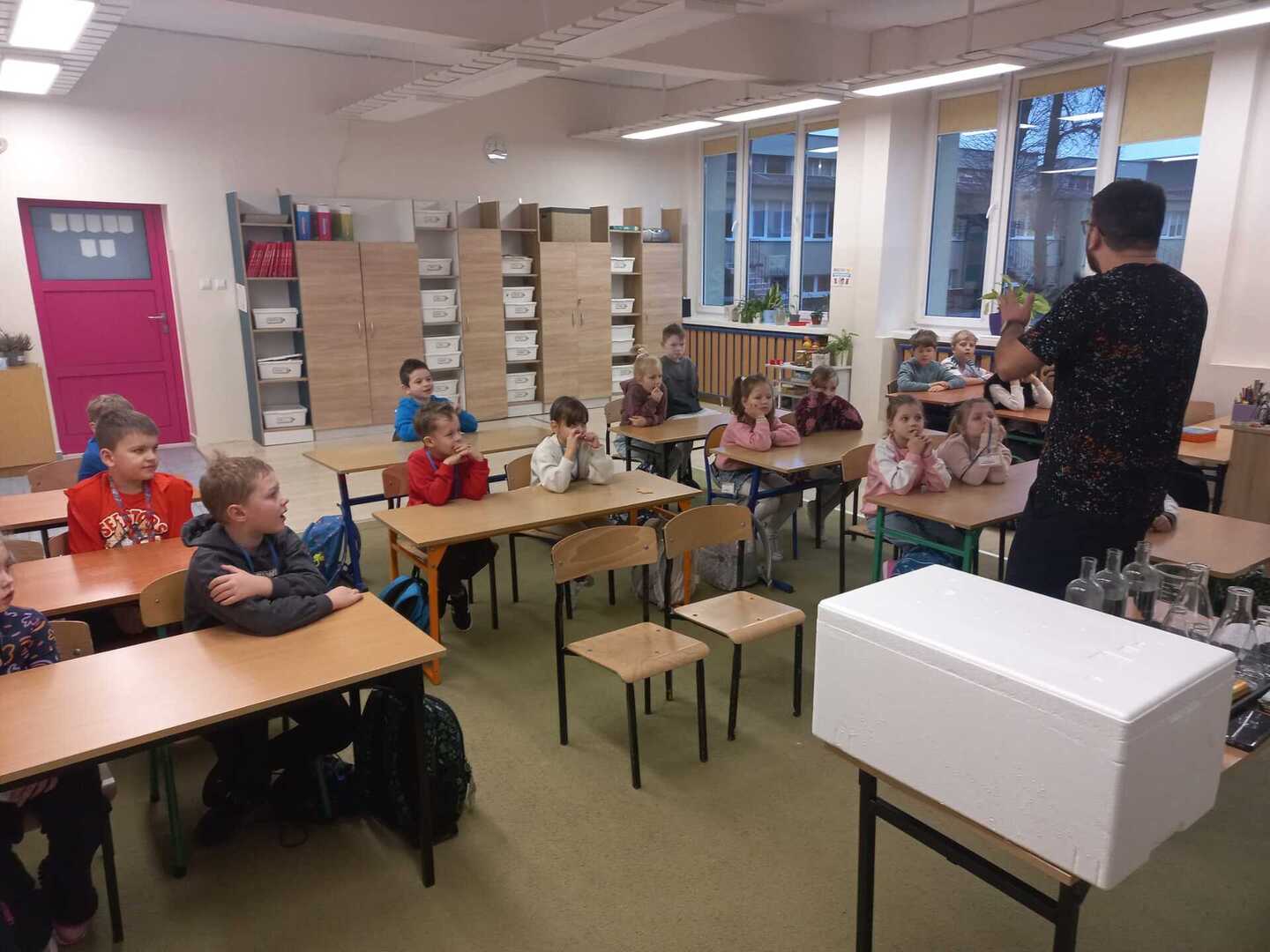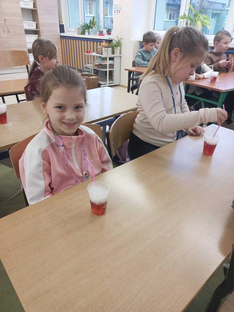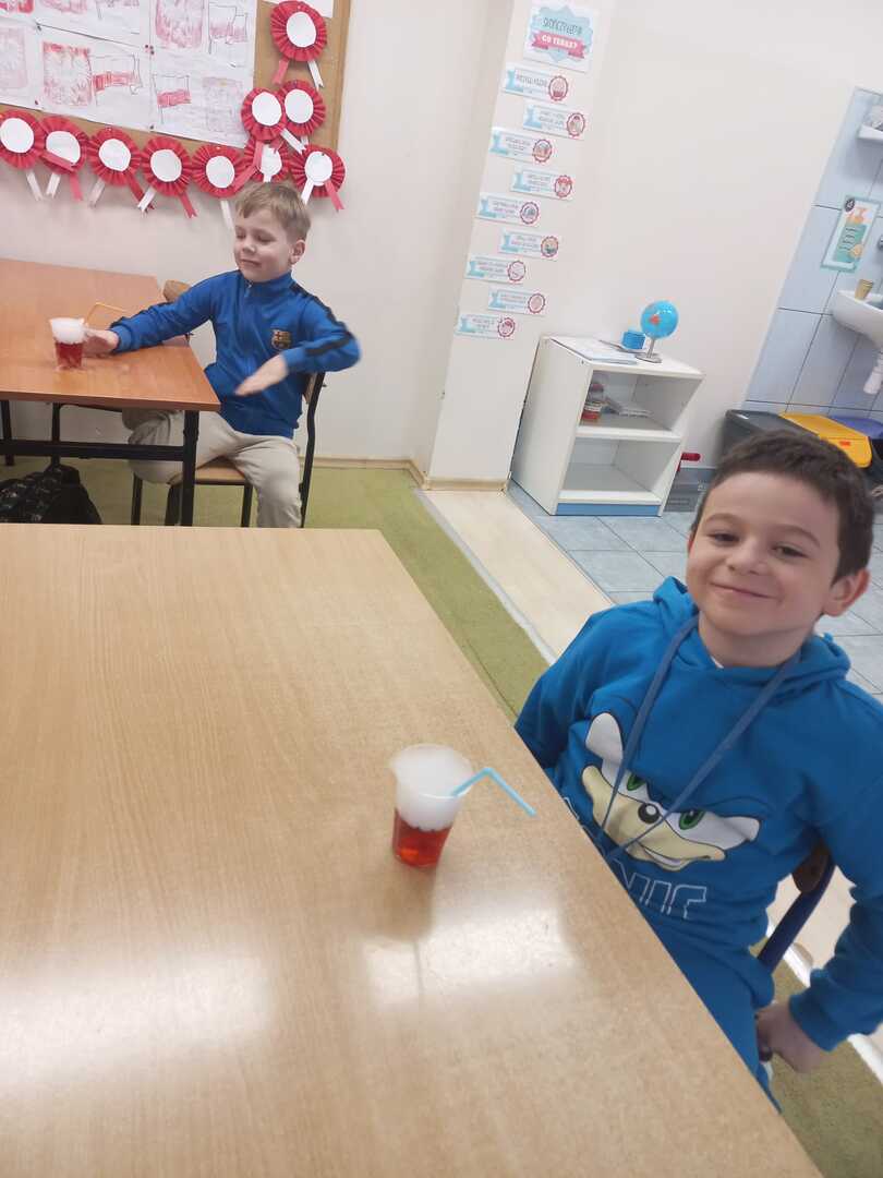Klasa 1a uczestniczyła w magicznych warsztatach w wykorzystaniem suchego lodu. Dzieci poznały jego właściwości poprzez zabawę. Z uwagą i zainteresowaniem obserwowali kolejne eksperymenty. Największą ekscytację wzbudził ogień :) Na zakończenie wszyscy pili sok z magicznym dymem. Uczestnicy podsumowali zajęcia jednym zdaniem ,,byliśmy w chmurach”.
