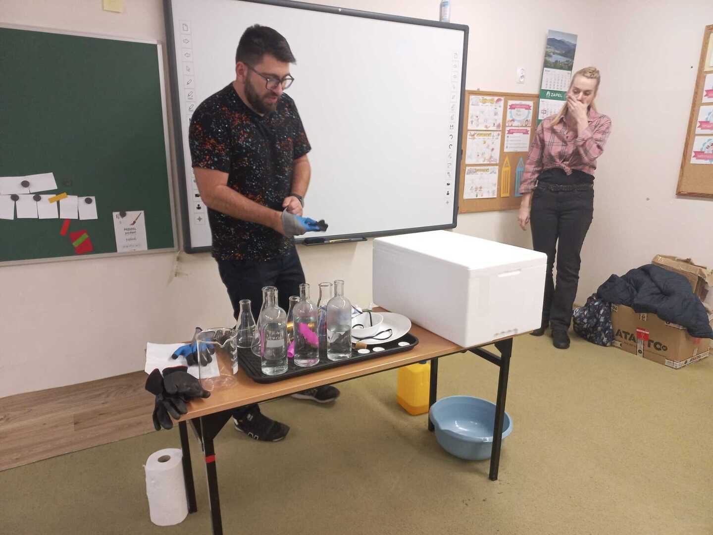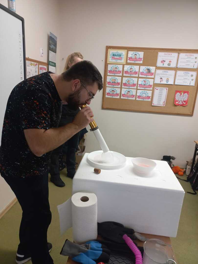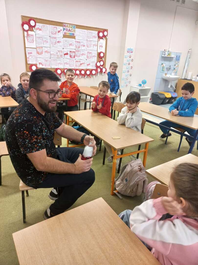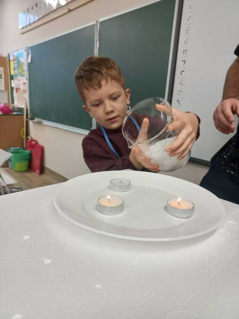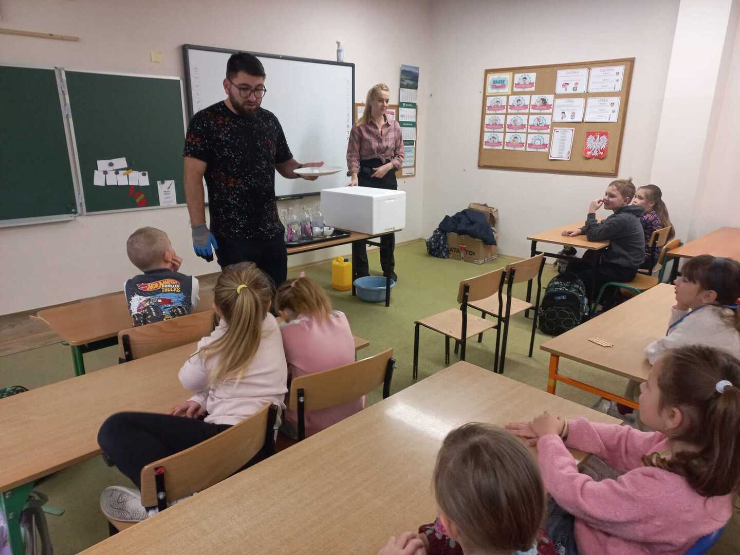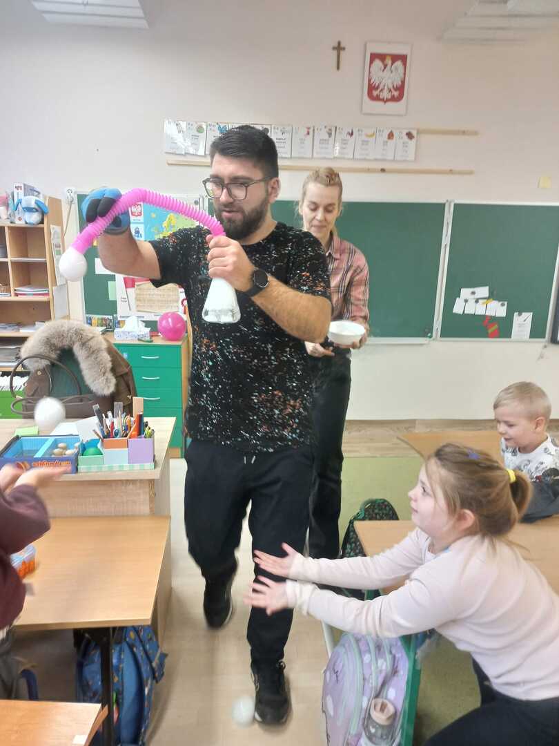 Klasa 1a uczestniczyła w magicznych warsztatach w wykorzystaniem suchego lodu. Dzieci poznały jego właściwości poprzez zabawę. Z uwagą i zainteresowaniem obserwowali kolejne eksperymenty. Największą ekscytację wzbudził ogień :) Na zakończenie wszyscy pili sok z magicznym dymem. Uczestnicy podsumowali zajęcia jednym zdaniem ,,byliśmy w chmurach”.
