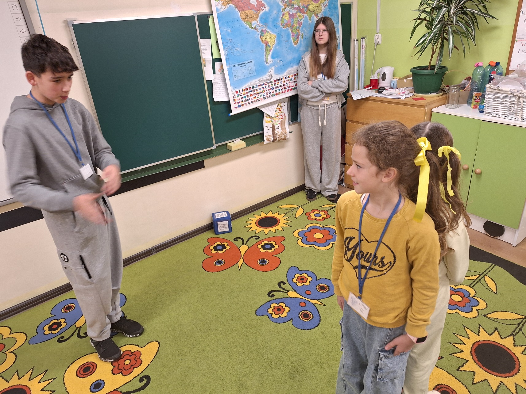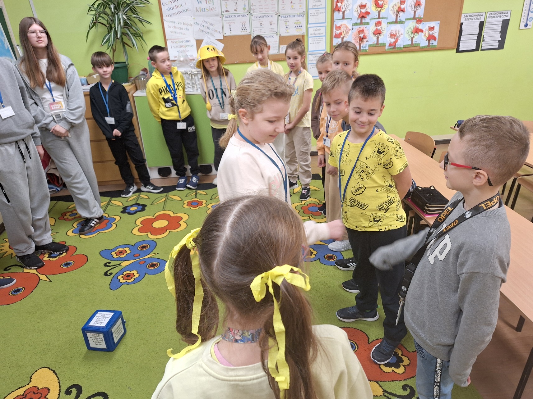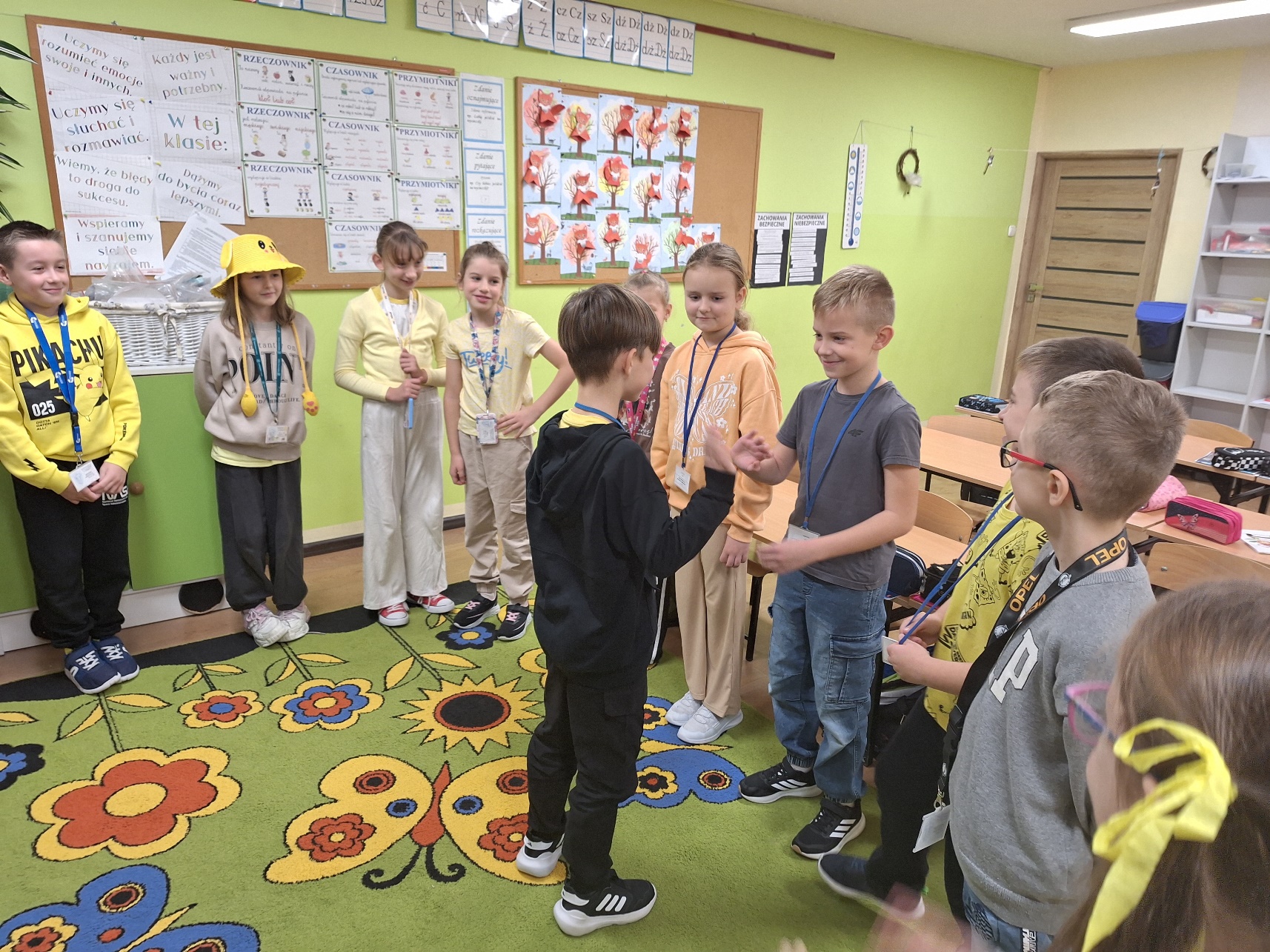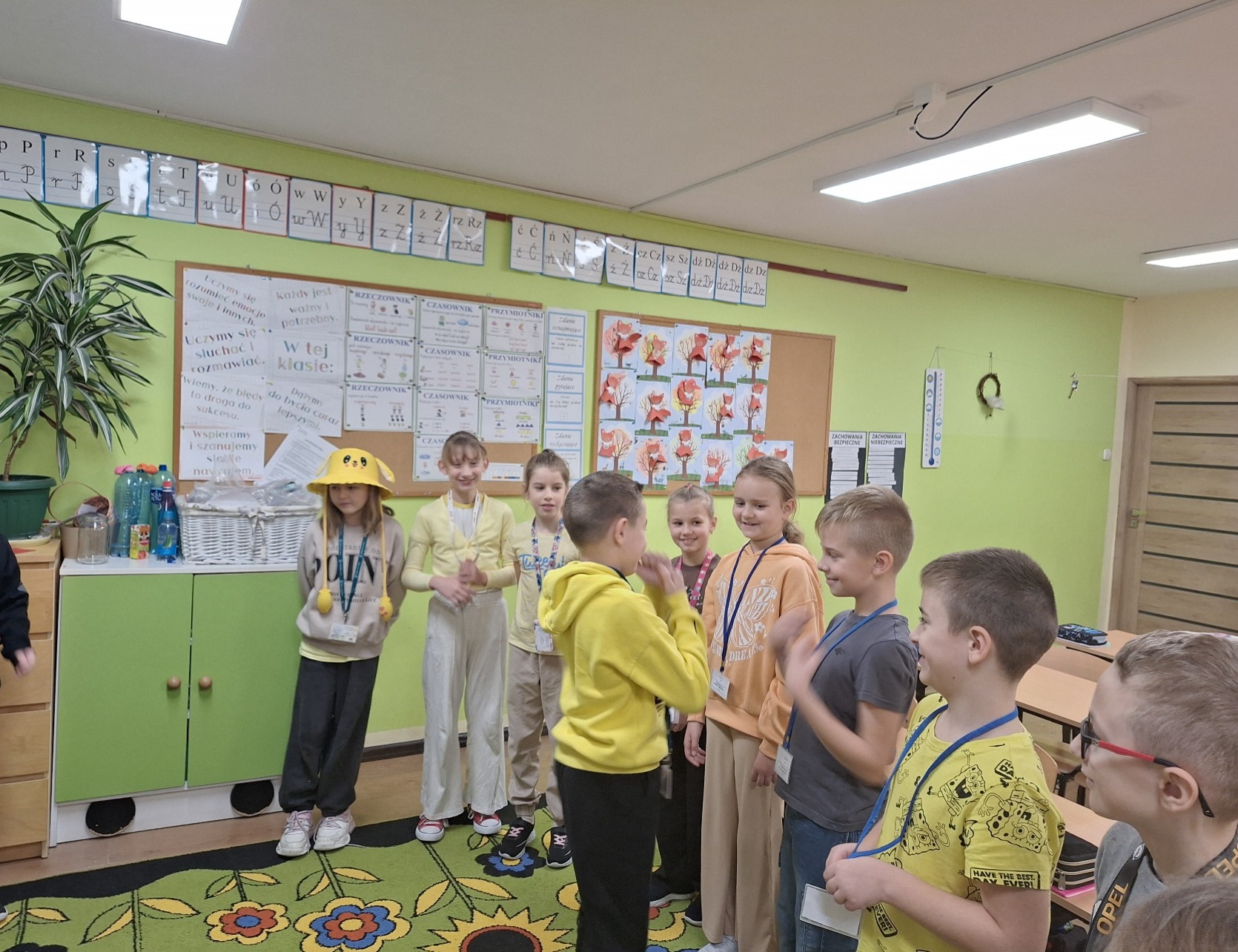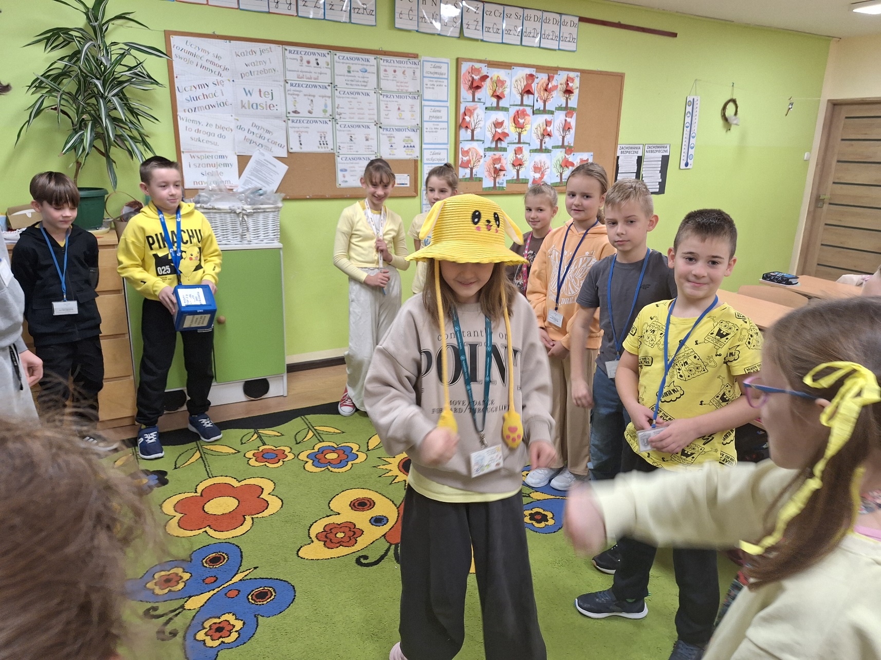 Uczniowie klasy III a przywitały ten wyjątkowy dzień kolorem żółtym. Z wielką radością uczestniczyły w zabawach przygotowanych przez uczniów ze starszych klas. Śmiechu było co niemiara.