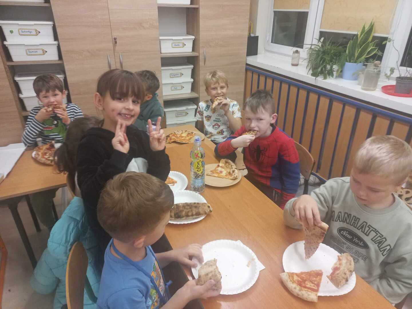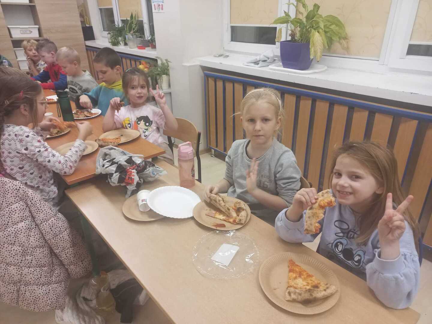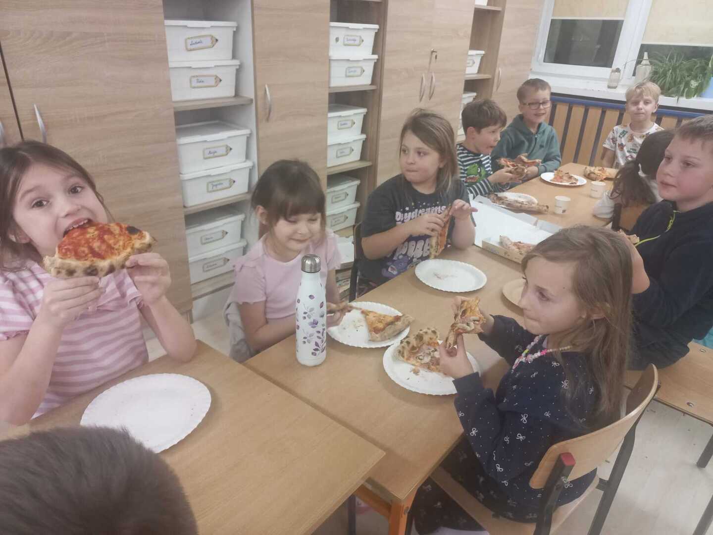 Uczniowie klasy 1a wzięli udział w wieczorze filmowym, podczas którego obejrzeli bajkę pod tytułem ,,W głowie się nie mieści". Oglądaniu towarzyszył ogrom emocji, które dzieci później mogły wspólnie omówić. Wieczór zakończył się smakowitą degustacja pizzy, którą zadundował nam tajemniczy sponsor.