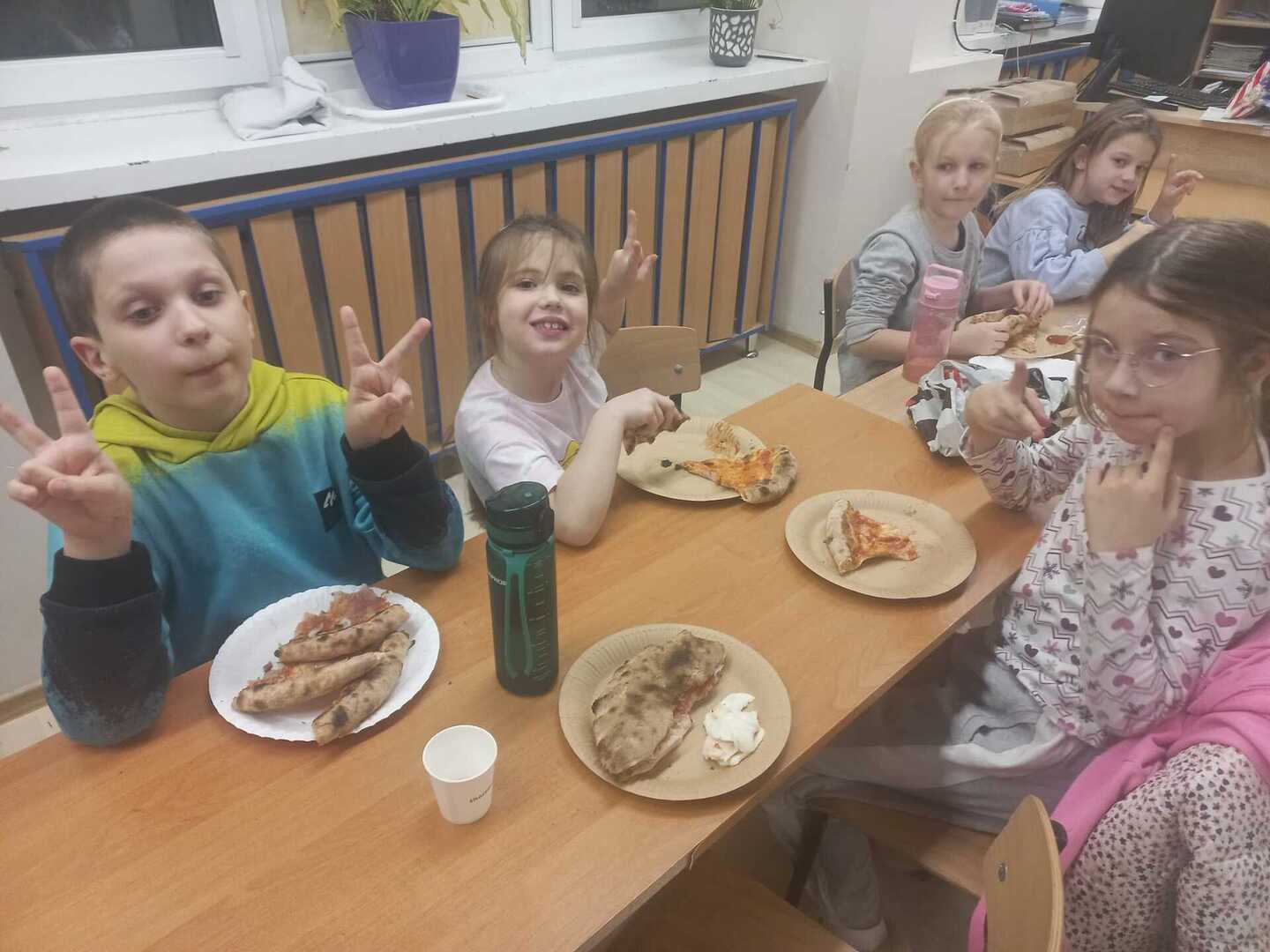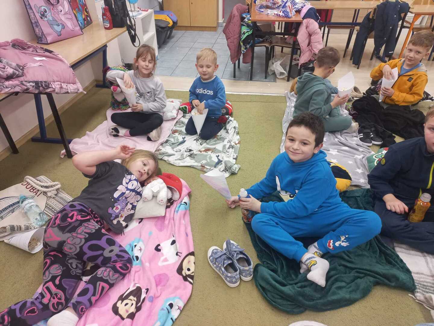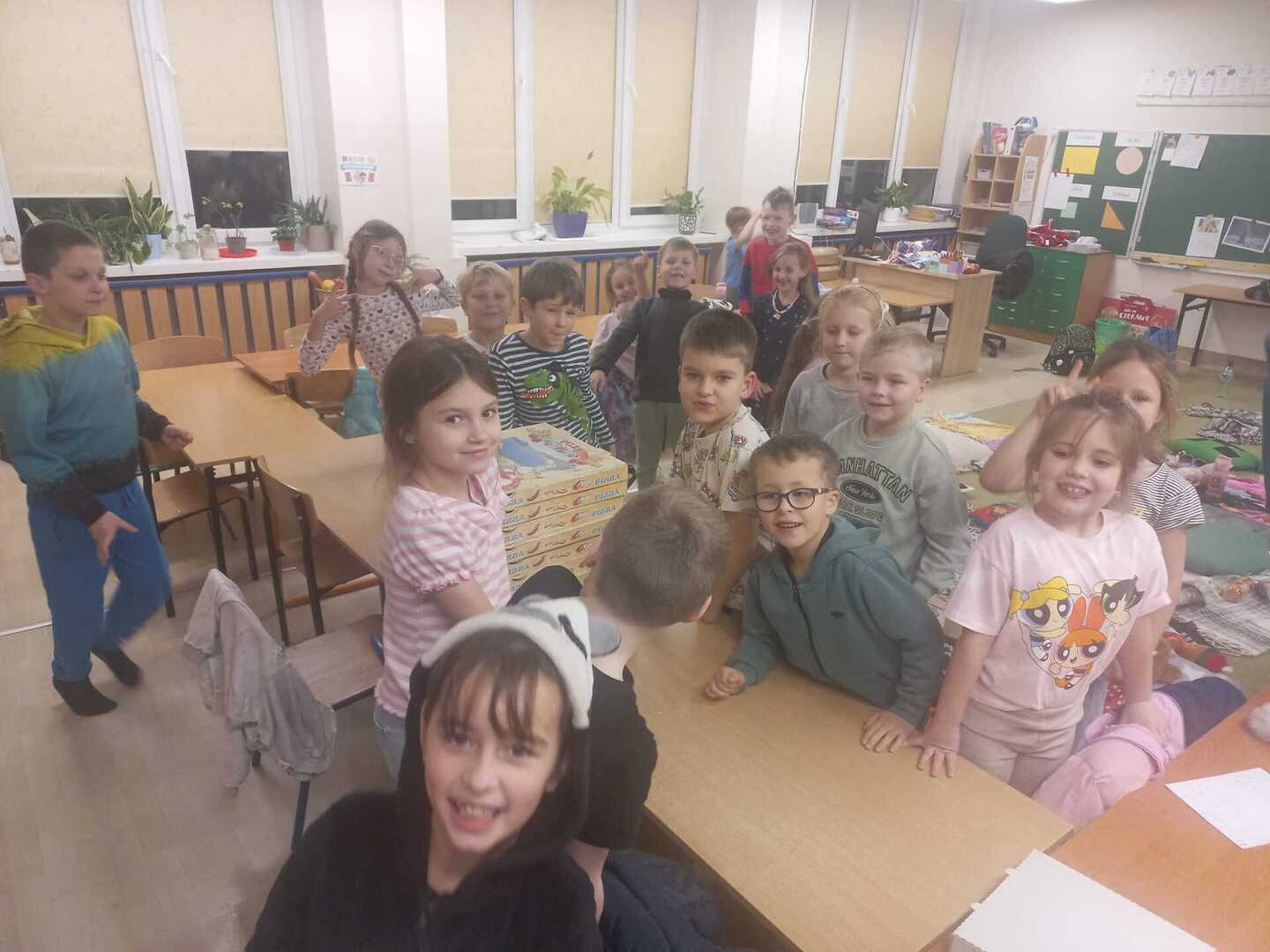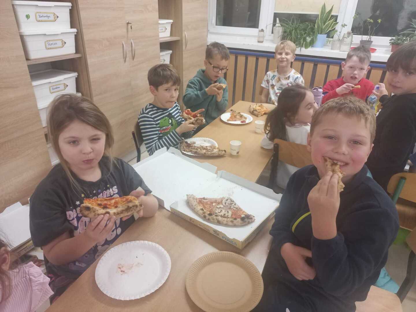 Uczniowie klasy 1a wzięli udział w wieczorze filmowym, podczas którego obejrzeli bajkę pod tytułem ,,W głowie się nie mieści". Oglądaniu towarzyszył ogrom emocji, które dzieci później mogły wspólnie omówić. Wieczór zakończył się smakowitą degustacja pizzy, którą zadundował nam tajemniczy sponsor.