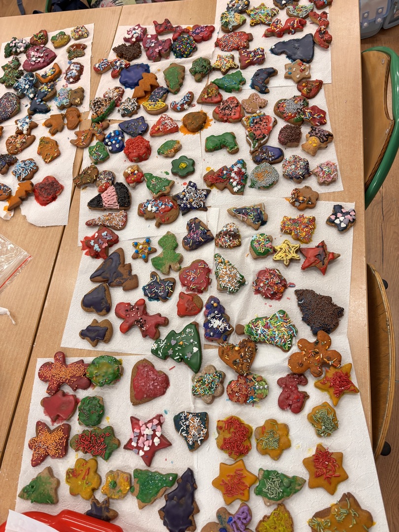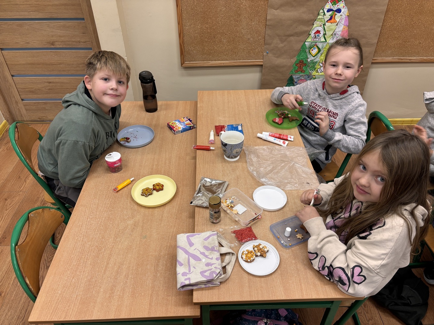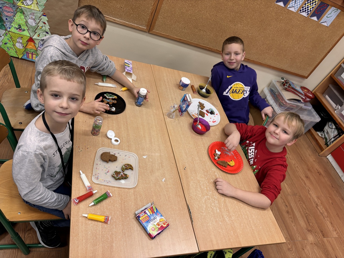 To jednak nie koniec niespodzianek! Aby umilić seniorom świąteczny czas, do kartek dołączono pyszne prezenty. Rodzice uczniów klas 2a oraz 2b upiekli pierniczki, a dzieci pięknie je ozdobiły.